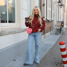 Deze Ruffle Trui is een chique en warme toevoeging aan je knitwear collectie. De trui is grof gebreid in een diepe bordeauxrode melange en heeft een unieke, geplooide 'ruffle' kraag en manchetten die zorgen voor een romantische en vrouwelijke touch.