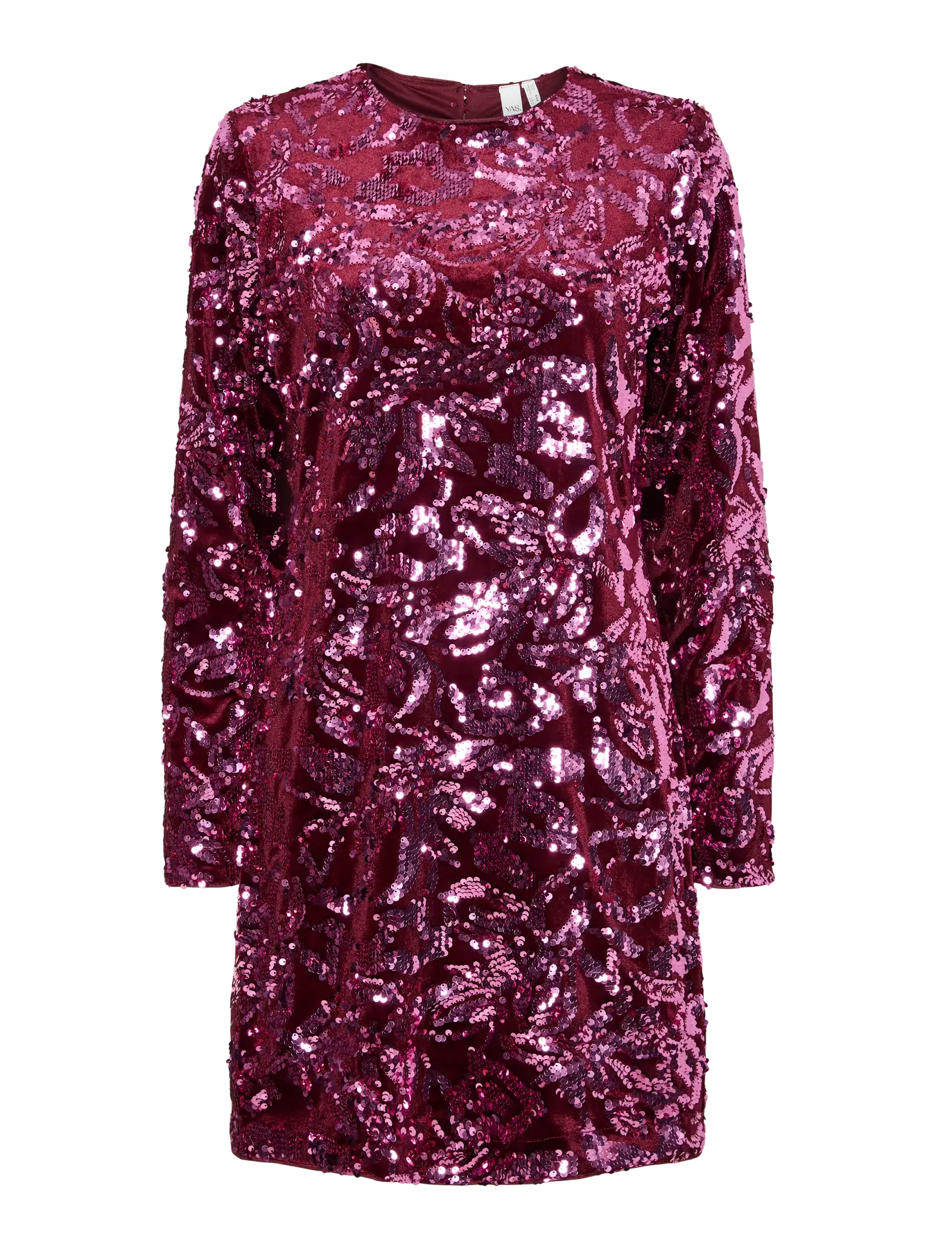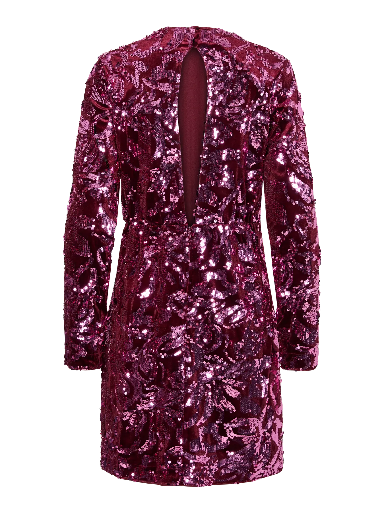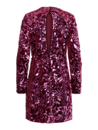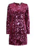 Deze YASROCCO SL Sequin Dress van YAS is een glamoureuze en opvallende jurk, perfect voor elke feestelijke gelegenheid. De mini-jurk is bedekt met prachtig geborduurde pailletten in diepe bordeauxrode tinten in een weelderig floraal dessin.