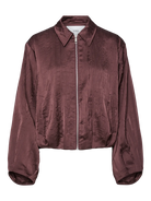 Dit YASTIRA LS Bomber Jacket van YAS is een stoere en trendy aanvulling op je outerwear collectie. Het jack is uitgevoerd in een rijke bordeauxrode kleur met een subtiele diagonale textuur die zorgt voor een glanzende, leer-achtige look.