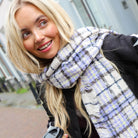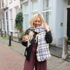 Feiner Schal mit Karodruck. Dieser Schal ist superweich und kann zu jedem Outfit getragen werden. Kombinieren Sie es wie unser Modell mit einem schönen Pullover.