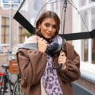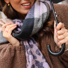 Schöner, weicher Schal, der zu jedem Outfit gut aussieht. Der Schal hat einen Karodruck in verschiedenen hellen Farben mit Blöcken und Leopardenmuster. Ideal für die kälteren Tage!
