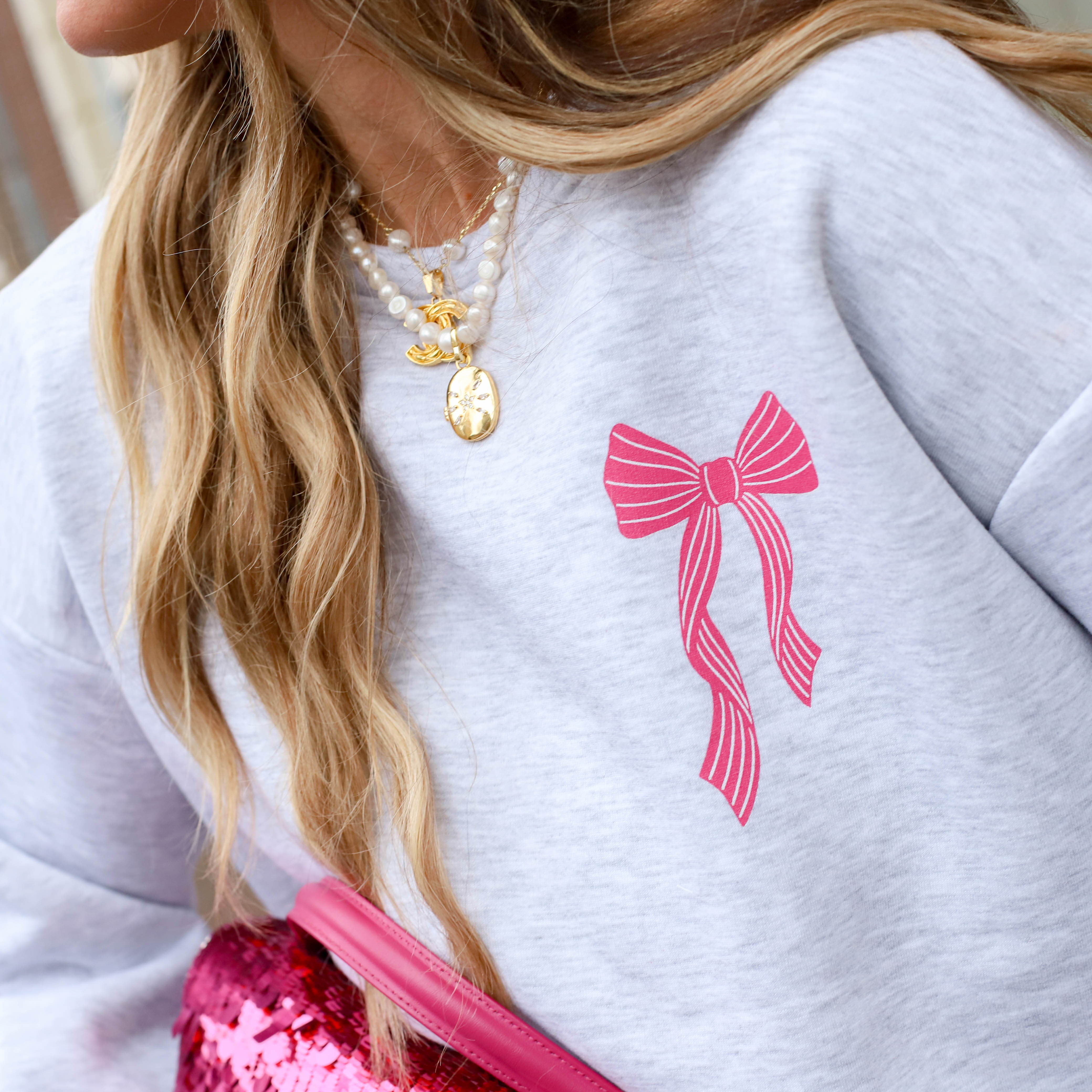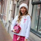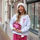 De Bow Sweatshirtis de ultieme mix van sportief en girly. Deze trui heeft een heerlijke baggy fit en verlaagde schouders, waardoor hij perfect valt voor een nonchalante, oversized look. De grijze mêlée basis wordt gecombineerd met een opvallende roze strik-opdruk, wat dit item een super trendy en vrouwelijke touch geeft.