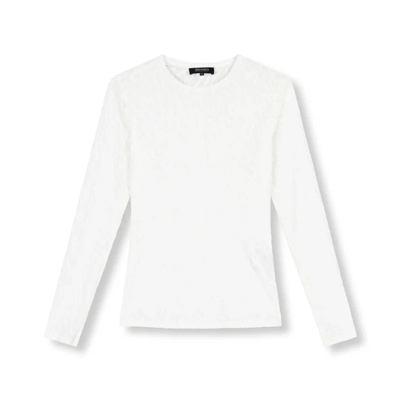 Geef je outfit een subtiele, elegante touch met deze leuke longsleeve. Deze longsleeve heeft een zachte, gestructureerde stof met een prachtig, ton-sur-ton patroon. De aansluitende pasvorm en de ronde halslijn maken dit een veelzijdig item dat perfect is om te dragen onder een vest of blazer, of als op zichzelf staand statement-stuk.