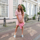 Ein schönes fröhliches Kleid mit Stickereien für den Sommer. Das Kleid hat eine wunderschöne grüne Farbe, ein Must-Have für den Frühling! Innen gefüttert.