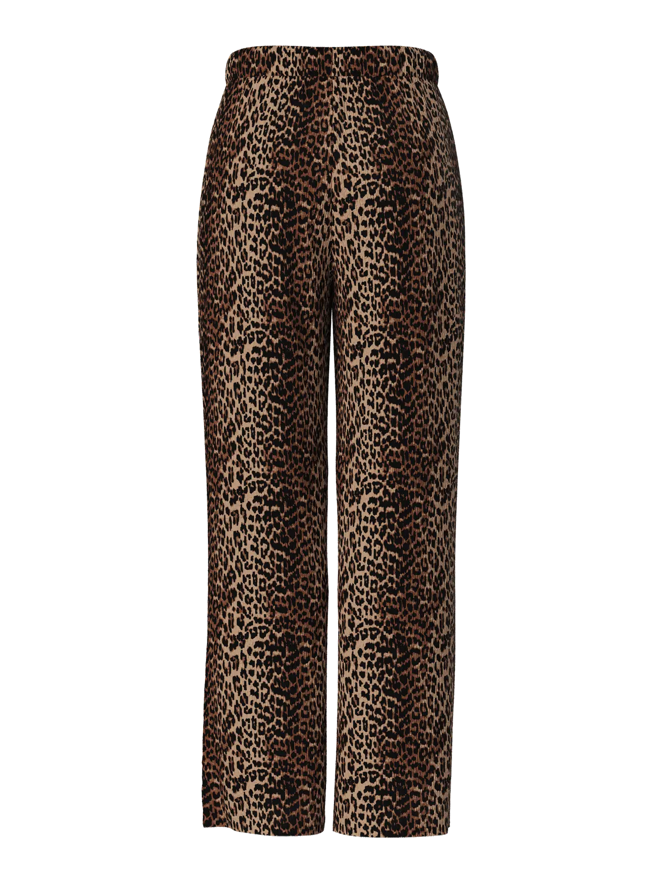 Deze comfortabele Pc Flora Wide Pants met een trendy leopard print is een absolute must-have voor elke garderobe! De broek heeft een elegant plissé-effect en een comfortabele wijde pasvorm. Combineer hem met een effen top en sneakers voor een casual look, of met hakken en een blouse voor een chique uitstraling!