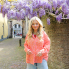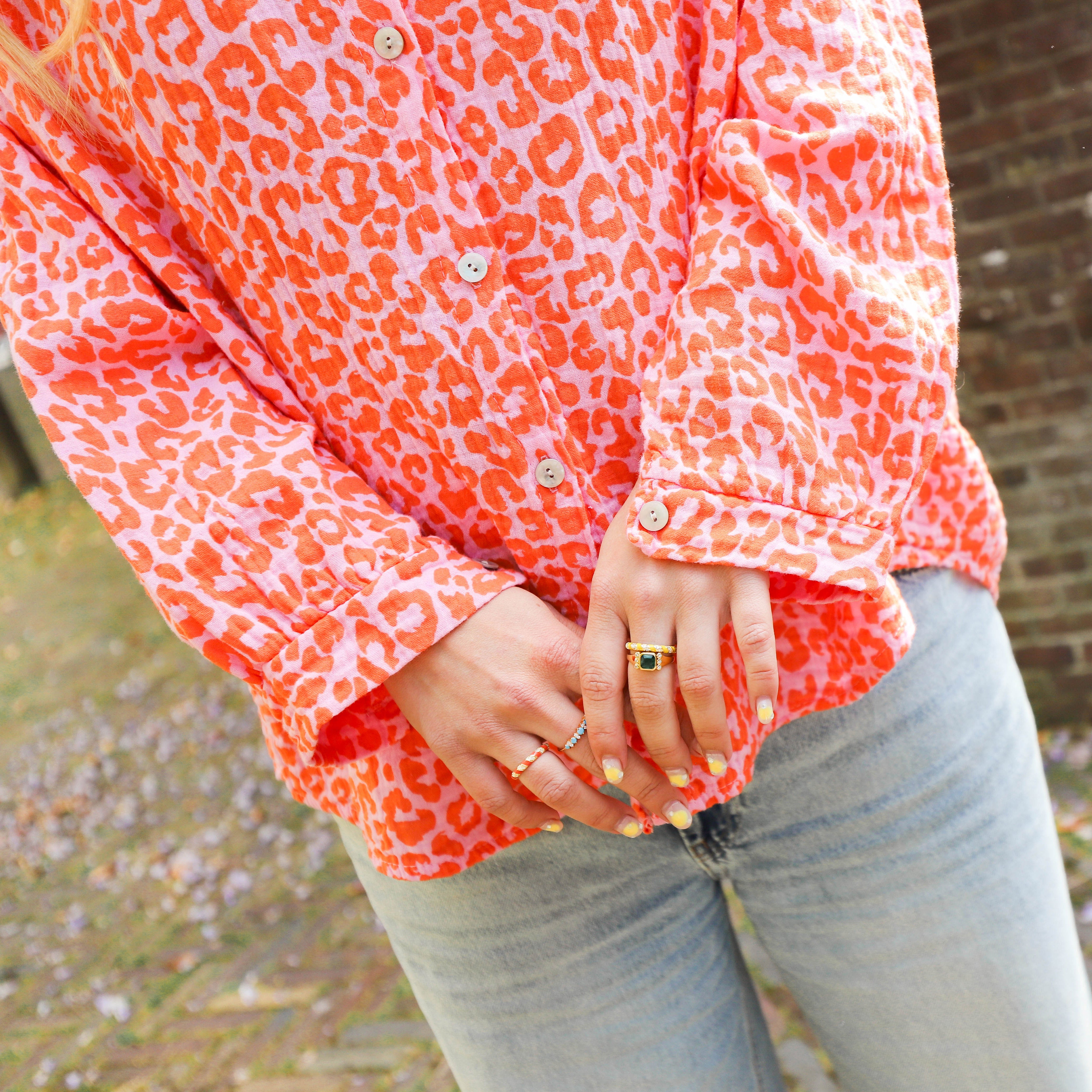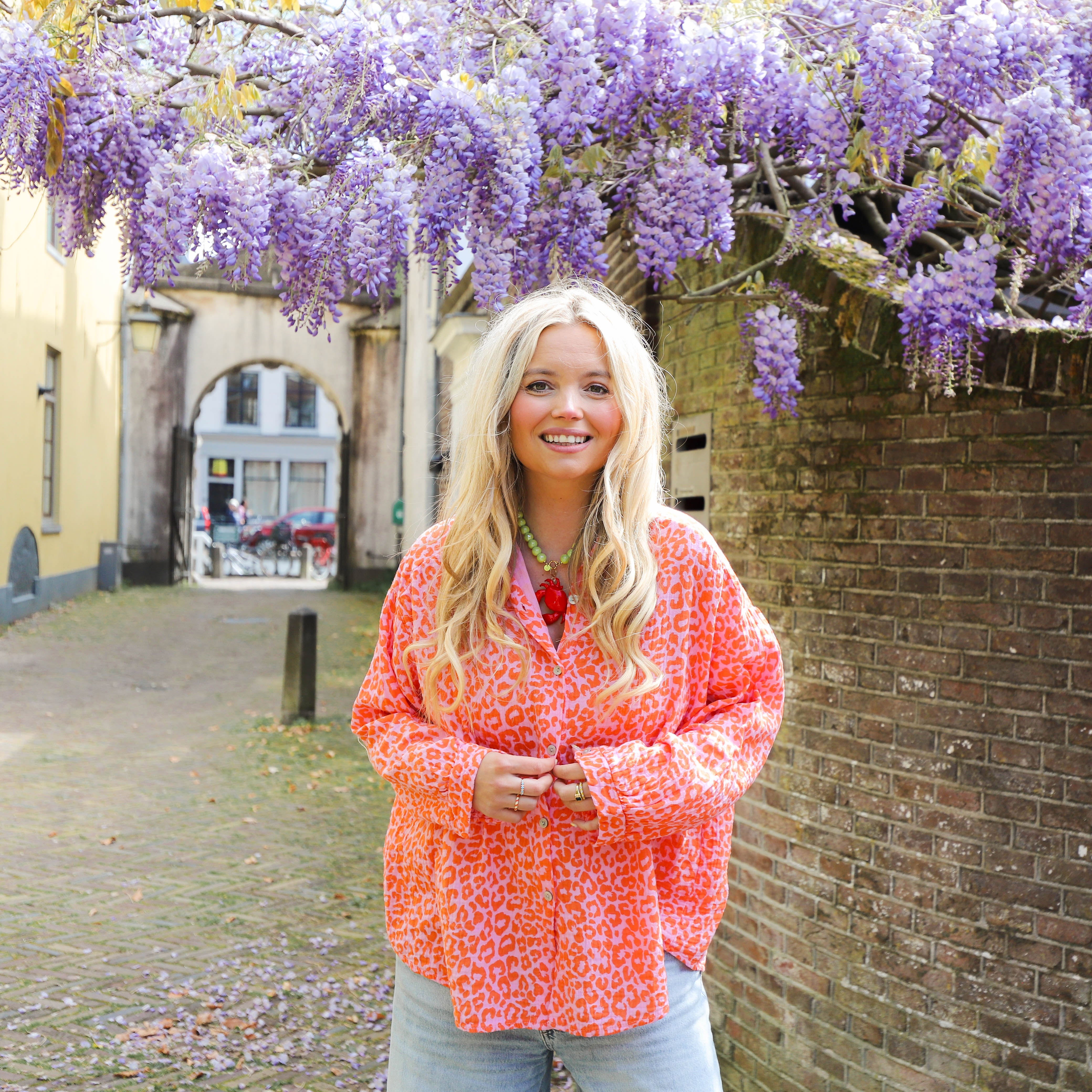 Voeg een speelse en trendy touch toe aan je garderobe met deze opvallende blouse. De heldere fluorkleuren in combinatie met de klassieke leopardprint zorgen voor een unieke en energieke uitstraling. Perfect om je outfit een vrolijke boost te geven!