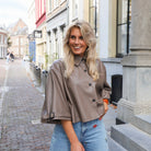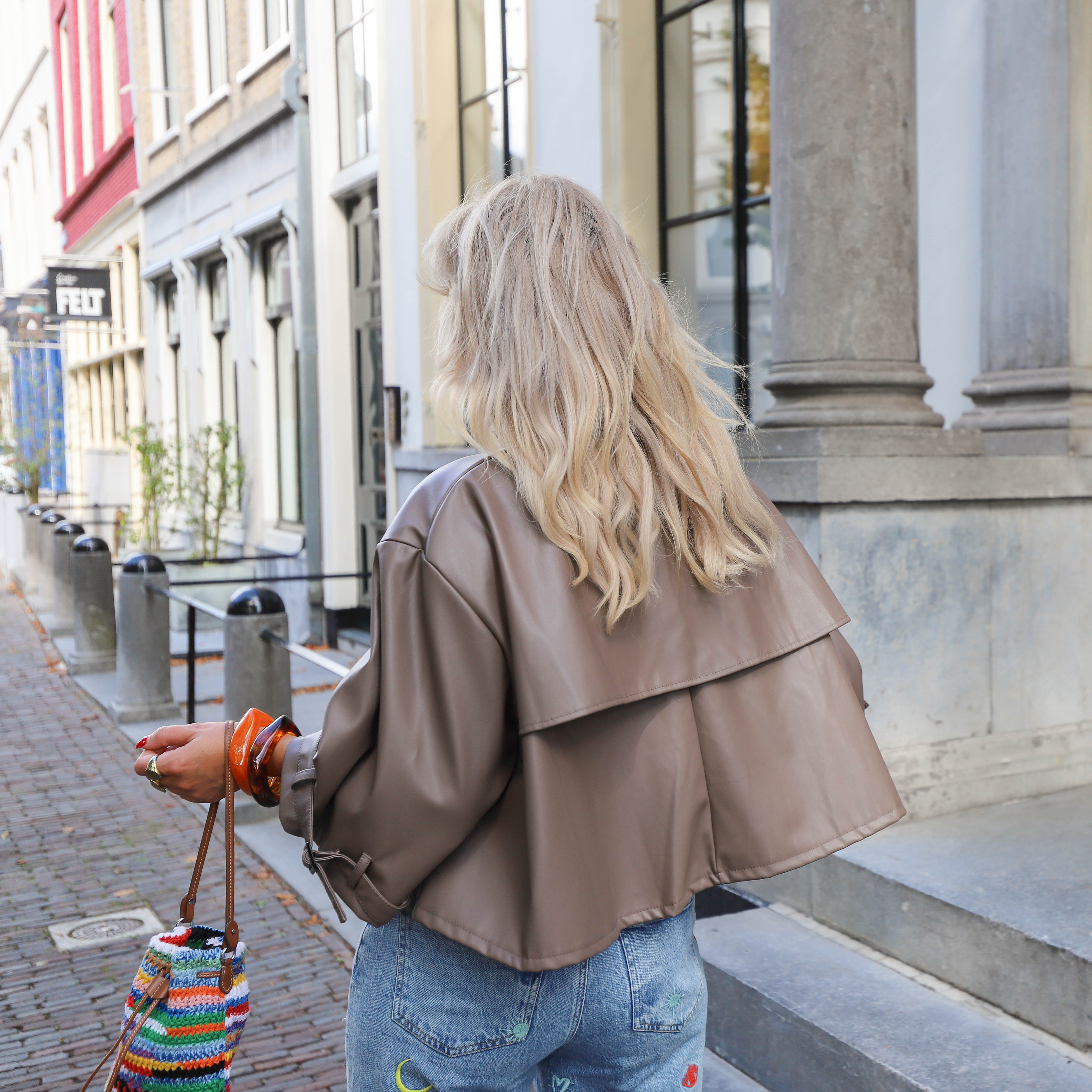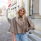 Geef je outfit een stoere, trendy touch met ons PU jack taupe. Dit korte jack heeft een relaxte pasvorm en is gemaakt van zacht kunstleer in een veelzijdige taupekleur. Het jack is afgewerkt met een klassieke kraag en heeft een knoopsluiting aan de voorkant. De mouwen zijn voorzien van een verstelbare band met gesp, wat zorgt voor een unieke twist.