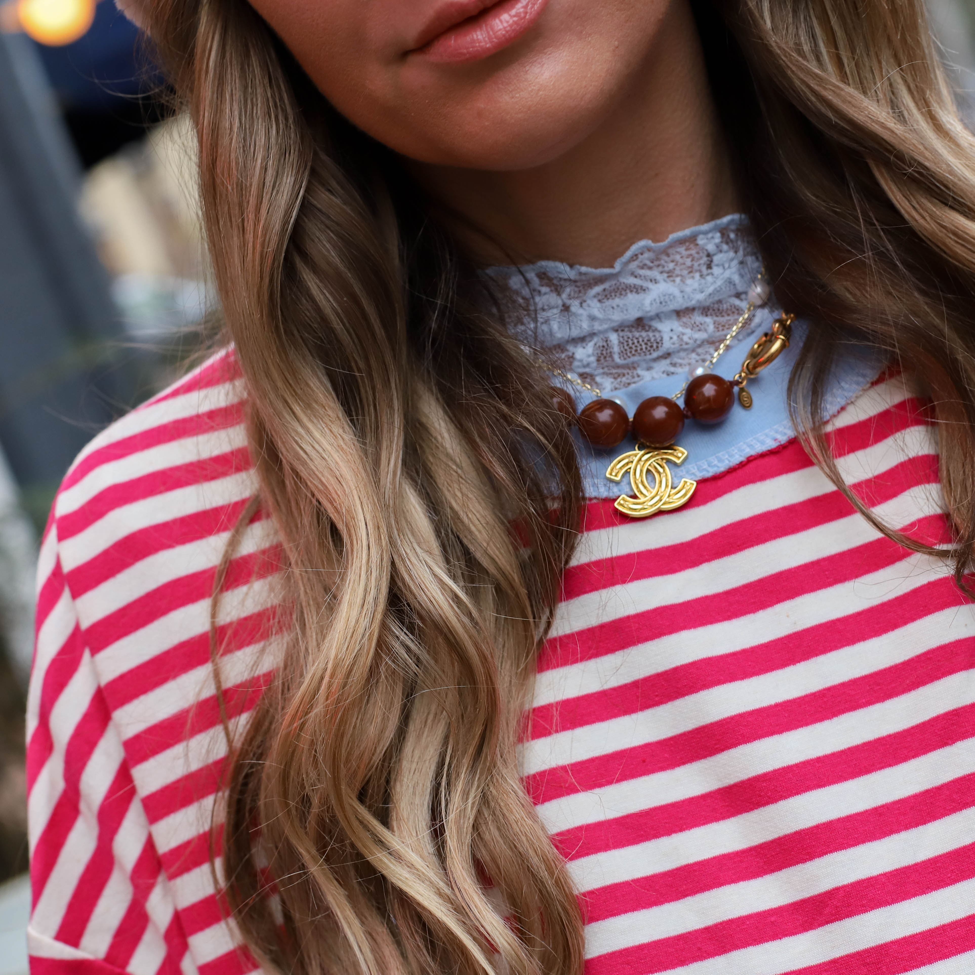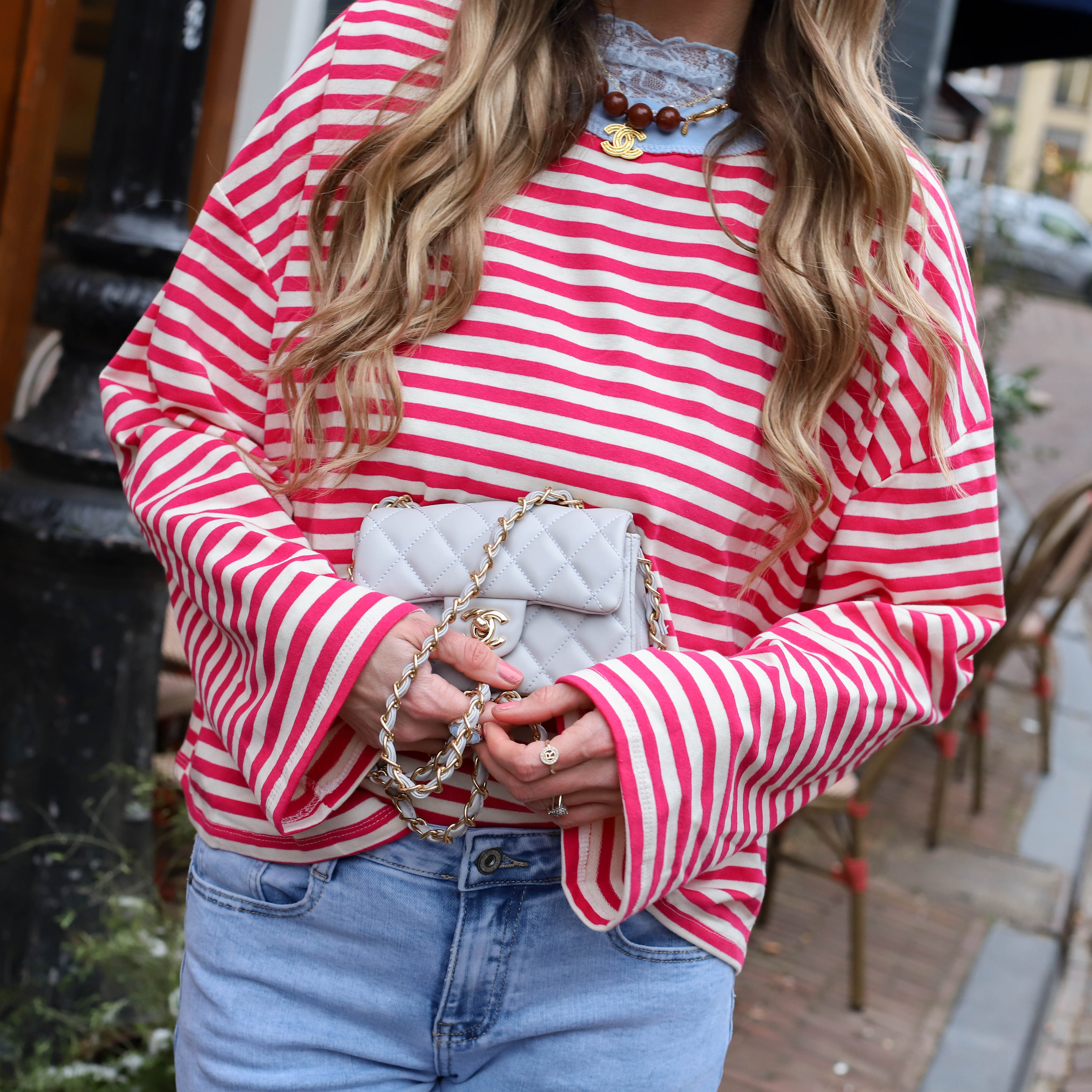 Bowie streep top rood creme