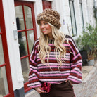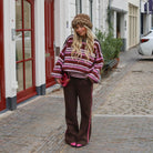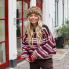 The sweater has a super soft fabric, a spacious fit, a round neckline, balloon sleeves and ribbed edges and a nice stripe print. The sweater fits great and is nice to combine with a skirt or jeans.