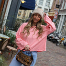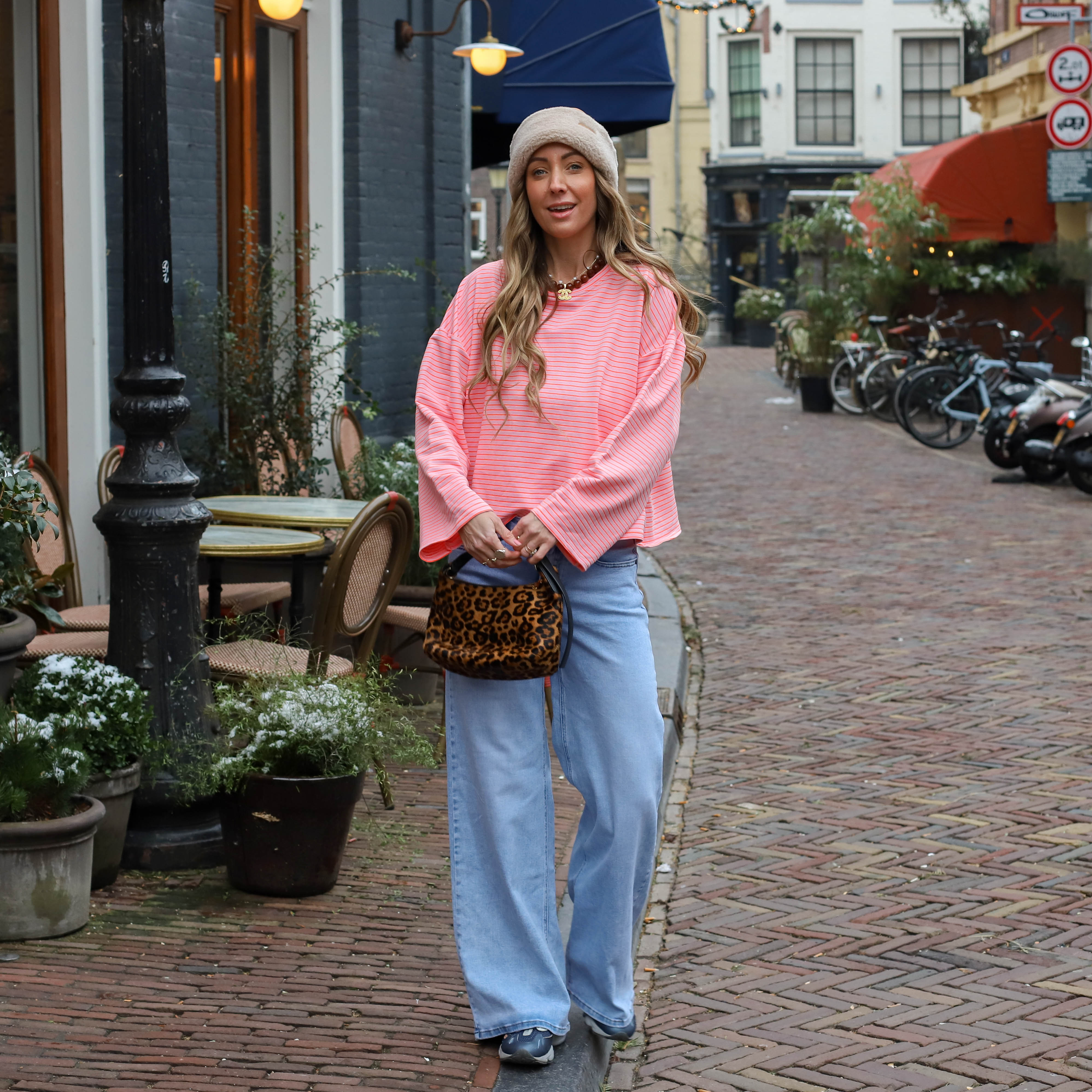 Combineer deze musthave met een baggy jeans of een pantalon voor een relaxte, fashionable outfit.