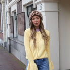 Dit Meghan Vest Geel is een elegant en vrouwelijk item, perfect om een zachte kleur en een uniek detail aan je outfit toe te voegen. Het vest is uitgevoerd in een sfeervolle gele tint en valt direct op door de stijlvolle uitlopende ruffle-mouwen. De parelmoerachtige knoopjes aan de voorzijde en de klassieke ronde hals geven het vest een verfijnde uitstraling, terwijl de zachte materiaalmix zorgt voor een behaaglijk gevoel.