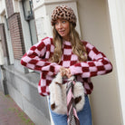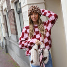 Deze Mohair Blokjes Trui is een trendy en warme toevoeging aan je knitwear collectie. De trui is gemaakt van een zachte, harige mohair-blend en heeft een opvallend checkerboard patroon in 2 kleuren. De trui heeft een klassieke ronde hals en een ruime, cropped pasvorm met opvallende ballonmouwen.