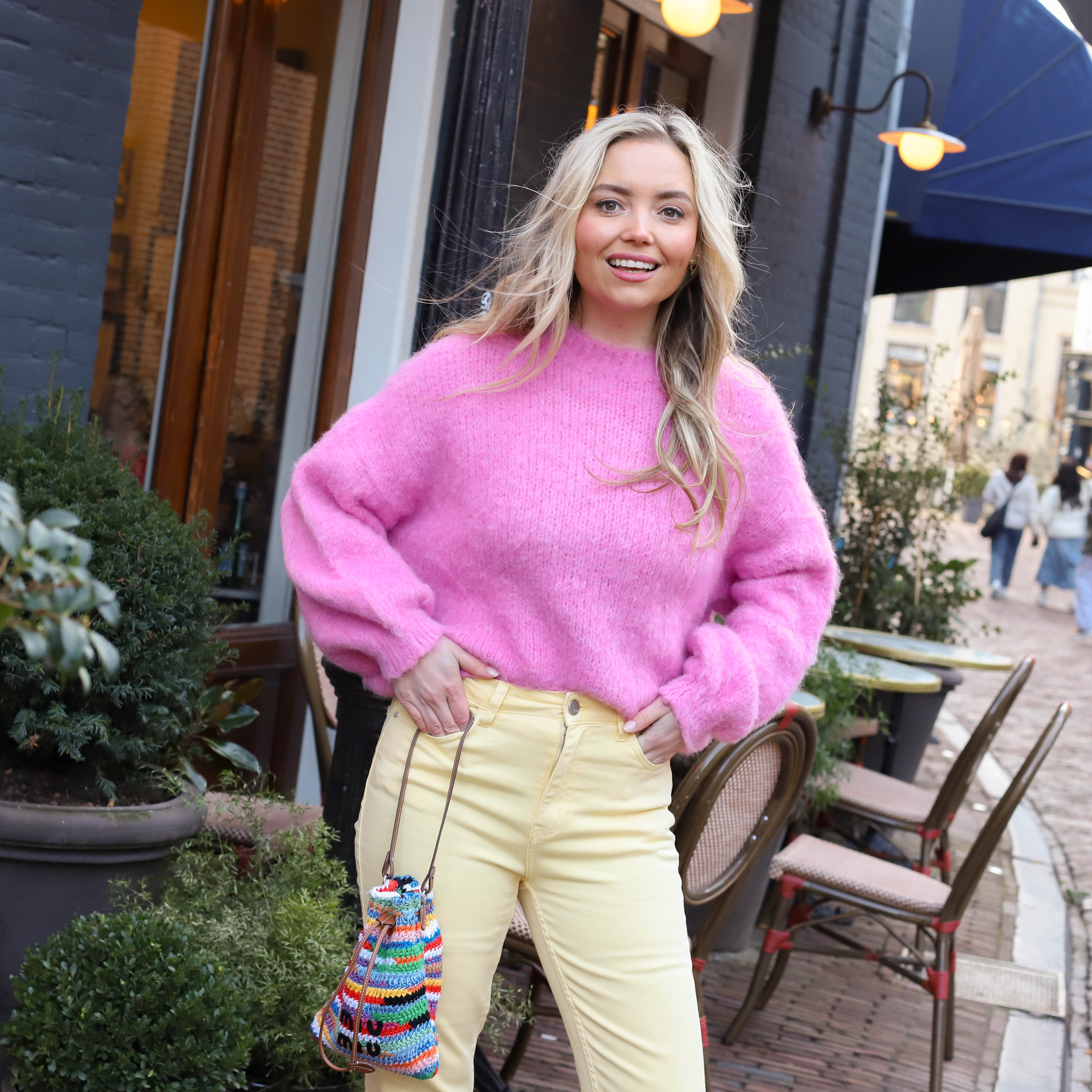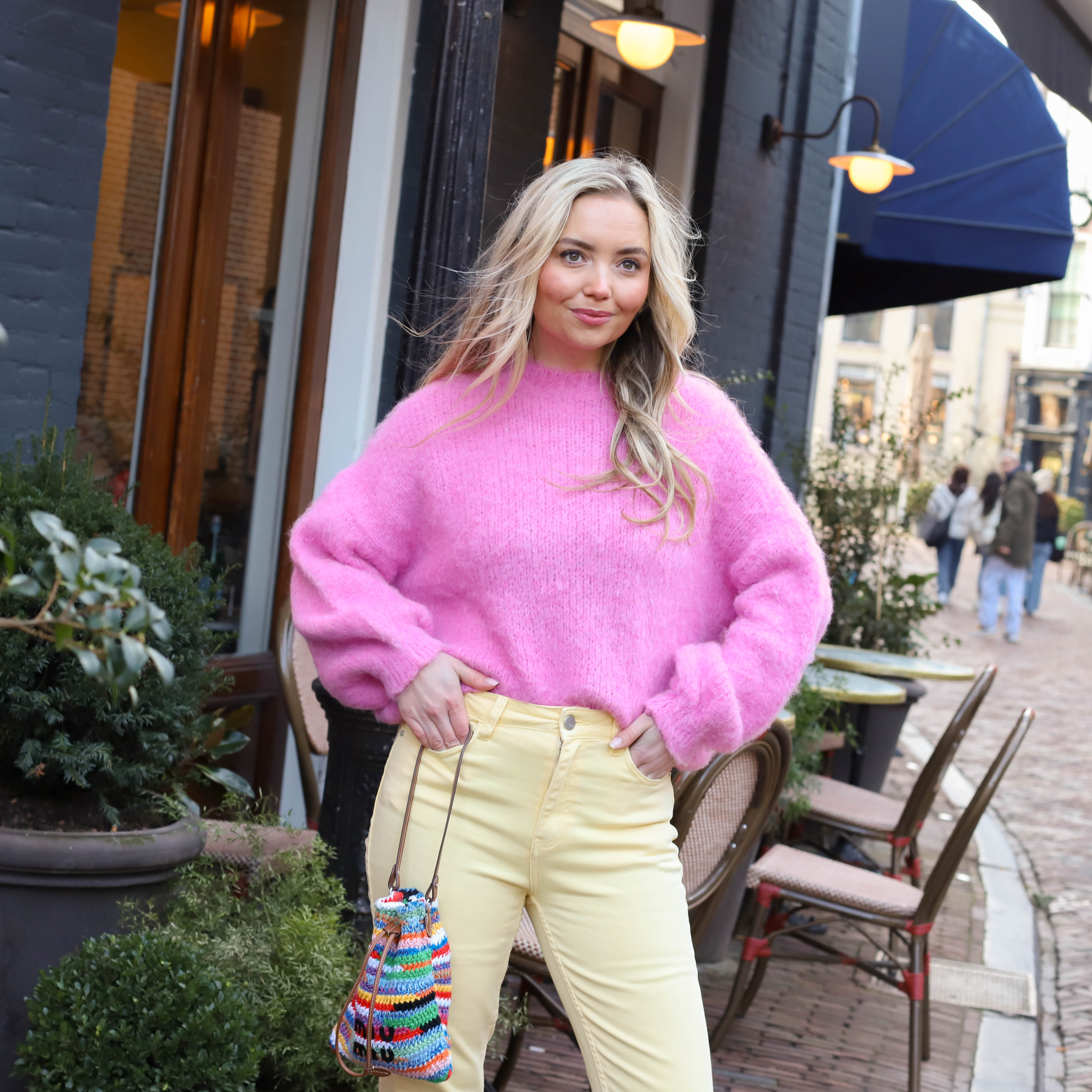 Deze roze Mohair-Look Trui is een levendige en comfortabele toevoeging aan je garderobe, perfect om kleur te geven aan grijze dagen. De trui valt direct op door zijn opvallende roze tint en de heerlijk zachte, harige textuur die zorgt voor een warme en luxe uitstraling. Met een klassieke ronde hals en een ontspannen pasvorm is dit het ideale item om zowel casual te dragen op een jeans als chic te stylen over een rok of jurk.
