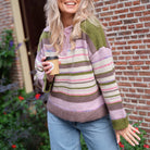 Deze pcRye Ls Polo Knit is een trendy, gebreide trui met een vintage vibe. De trui combineert een speels streepdessin in een warm kleurenpalet van verschillende kleuren. De opvallende, grofgebreide polokraag en de knoopsluiting met grove knopen geven deze trui een uniek silhouet. De trui heeft een comfortabele, iets cropped pasvorm. Style 'm met een rechte jeans en stoere laarzen voor een moderne, gelaagde look.