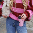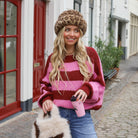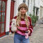 Deze Streep Knit is een comfy en heerlijk zachte trui voor de koude dagen. De trui is grof gebreid met een harige textuur en heeft opvallende horizontale strepen in roze en burgundy.