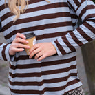 Deze Streep Top is een must-have basic met een chique twist. De top is uitgevoerd in een klassiek horizontaal streepdessin in een levendige combinatie van blauw en bruin. De soepelvallende stof, de elegante wijde boothals en de oversized pasvorm maken deze top perfect voor een nonchalante, maar verzorgde look.