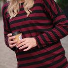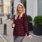 Deze Streep Top is een must-have basic met een chique twist. De top is uitgevoerd in een klassiek horizontaal streepdessin in een levendige combinatie van burgundy en bruin. De soepelvallende stof, de elegante wijde boothals en de oversized pasvorm maken deze top perfect voor een nonchalante, maar verzorgde look.