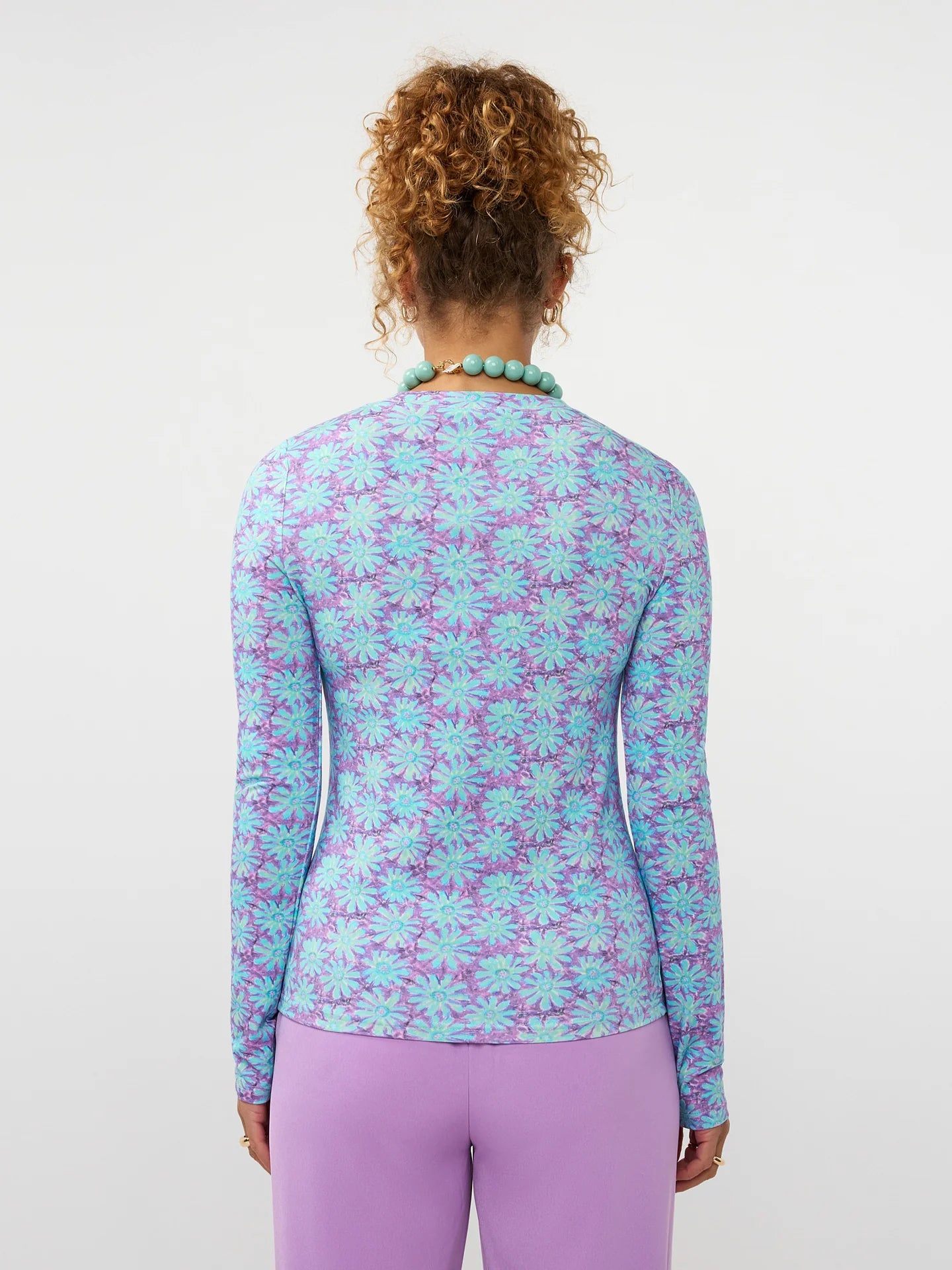 Top Christine is een aangesloten top met een all-over bloemenprint die zorgt voor een speelse en vrouwelijke uitstraling. De stof is superzacht en voelt heerlijk comfortabel aan op de huid, waardoor de top perfect is voor dagelijks draagcomfort. De totale lengte van Top Christine is 61 cm met een mouwlengte van 63 cm bij een maat S.