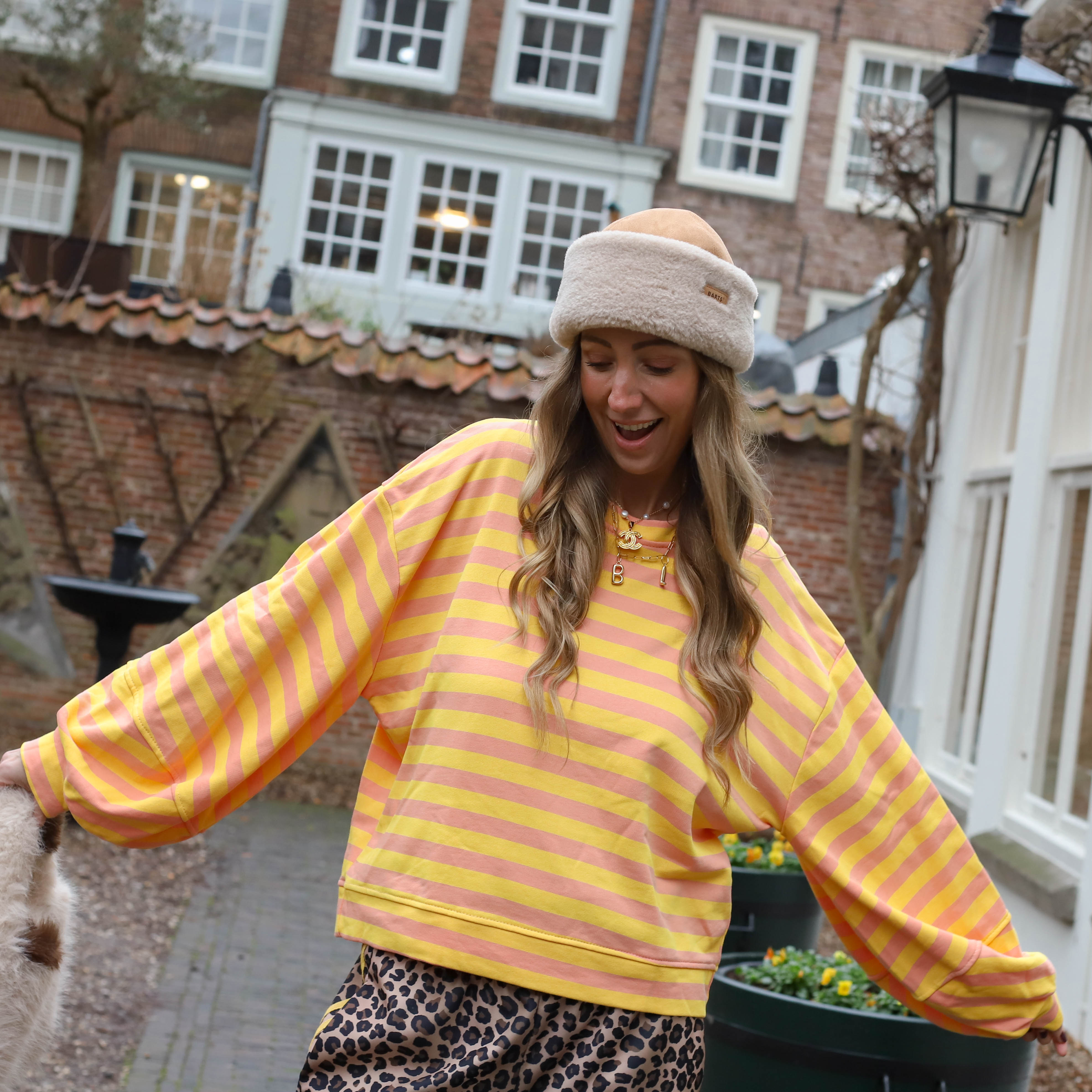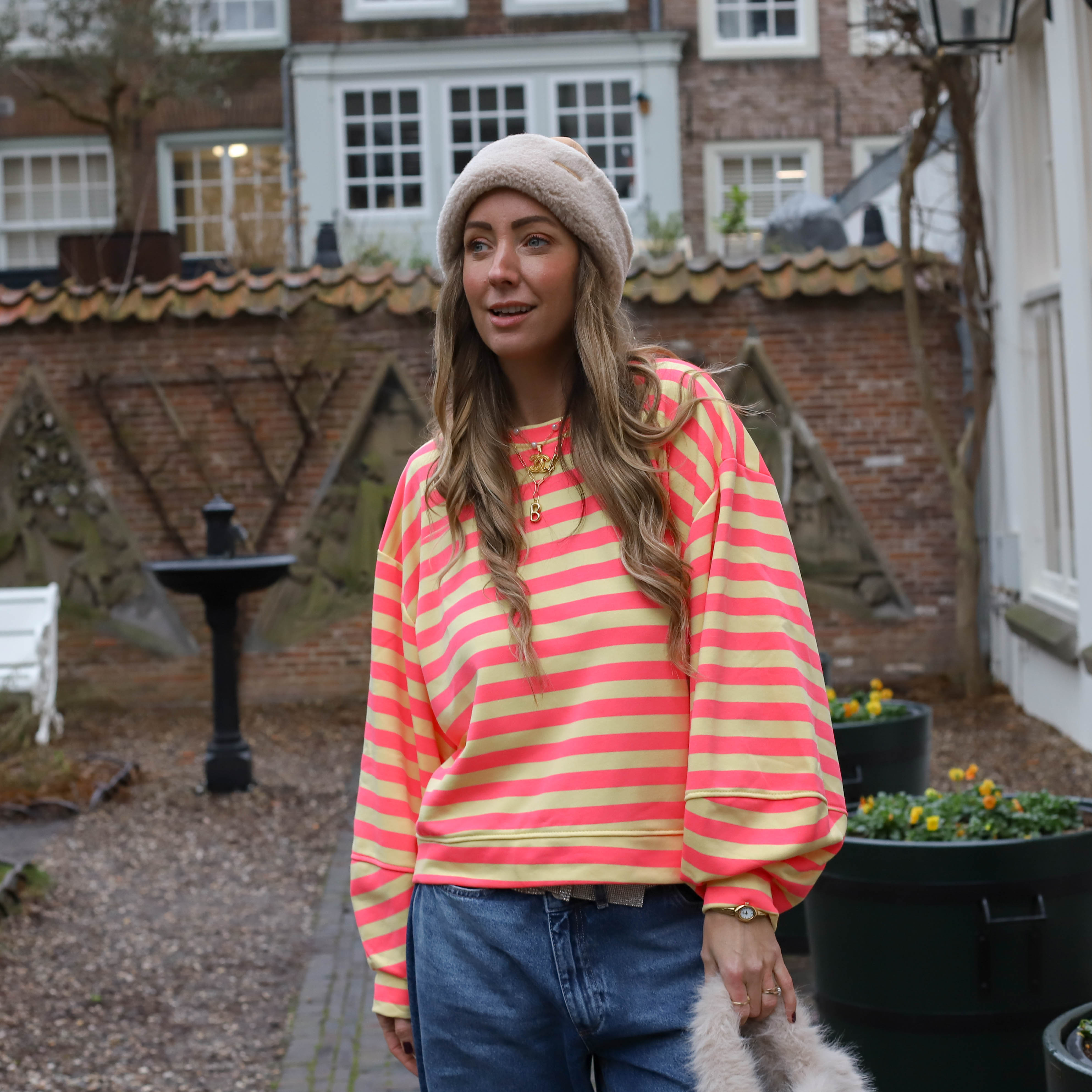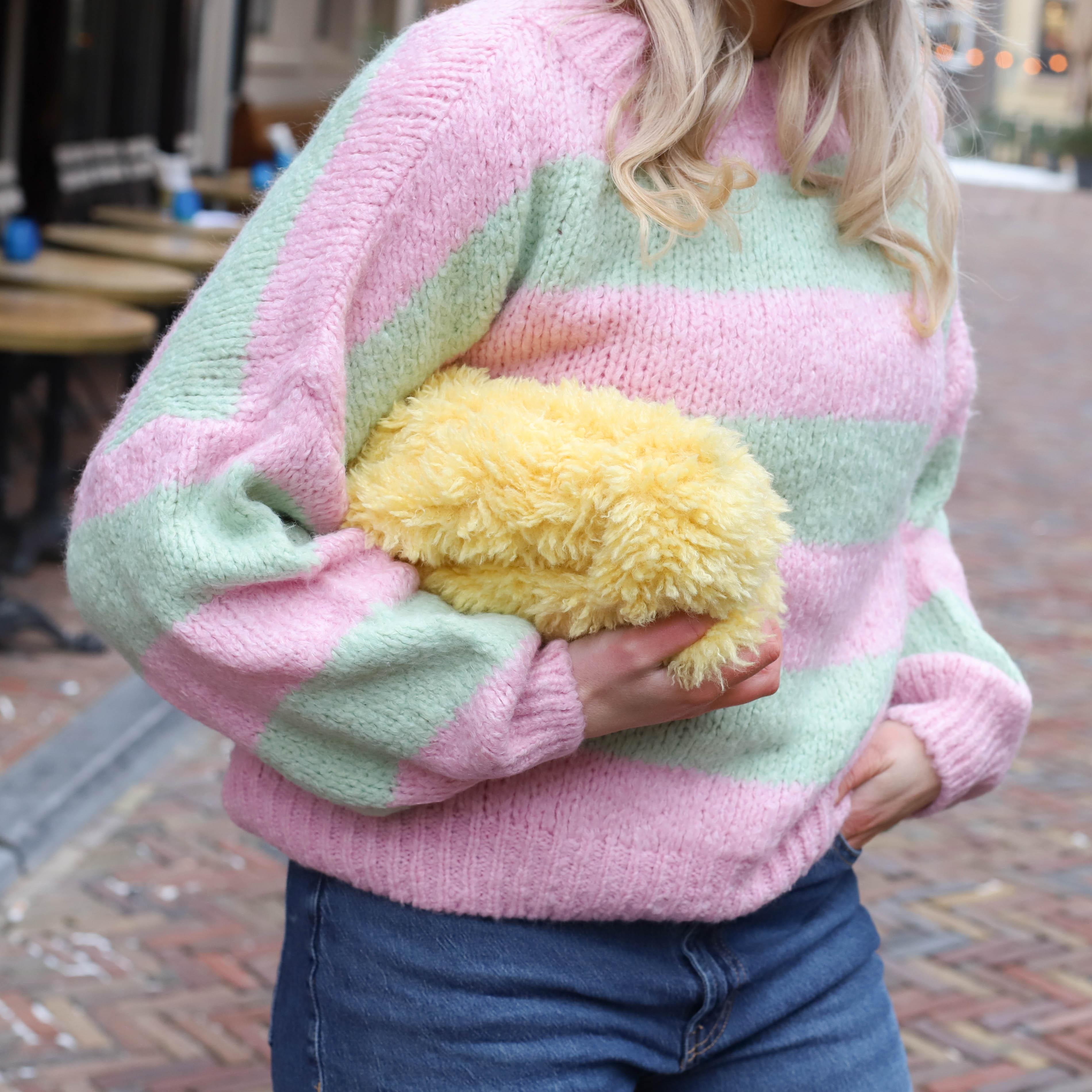 Gigi streep trui geel roze