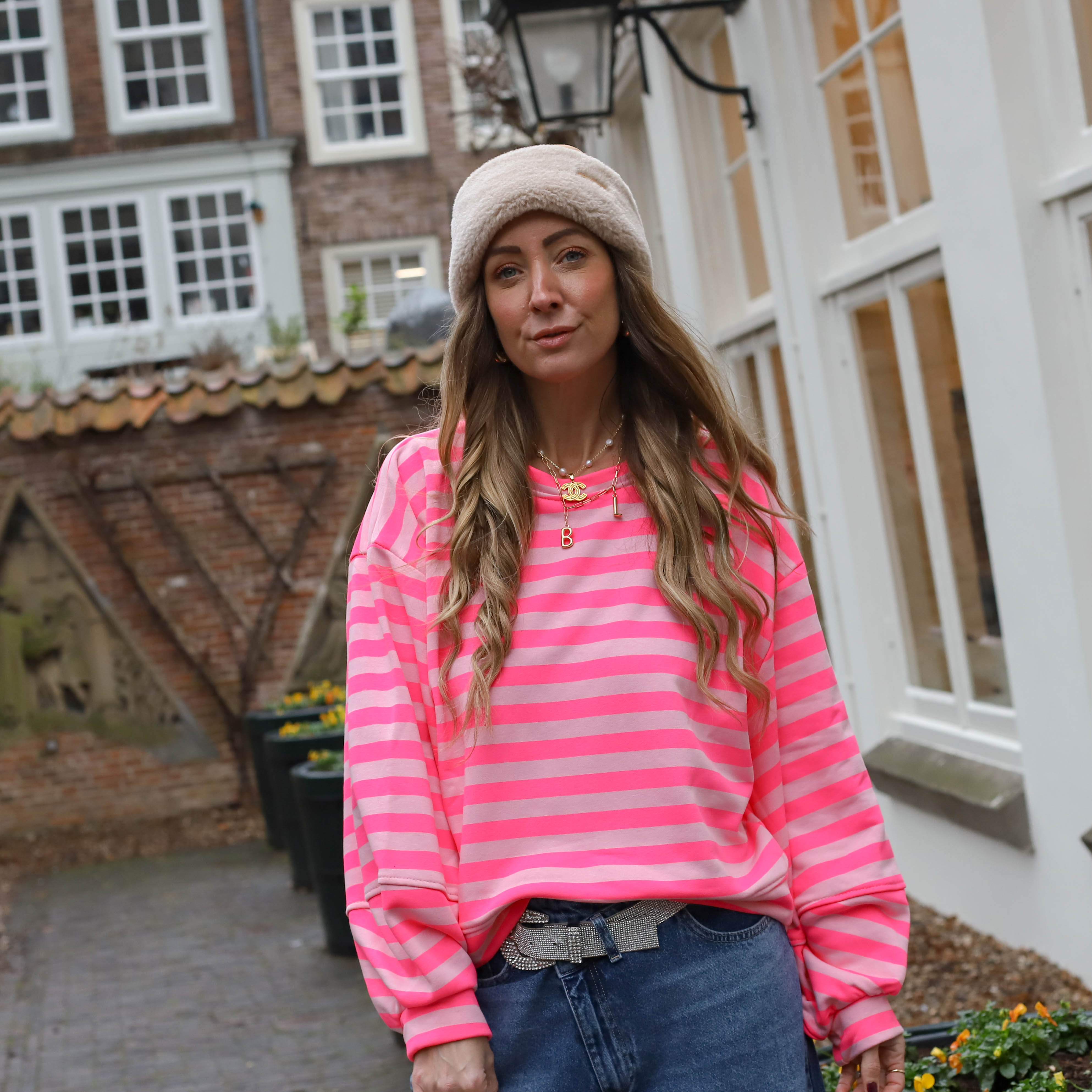 Billy streep trui roze groen