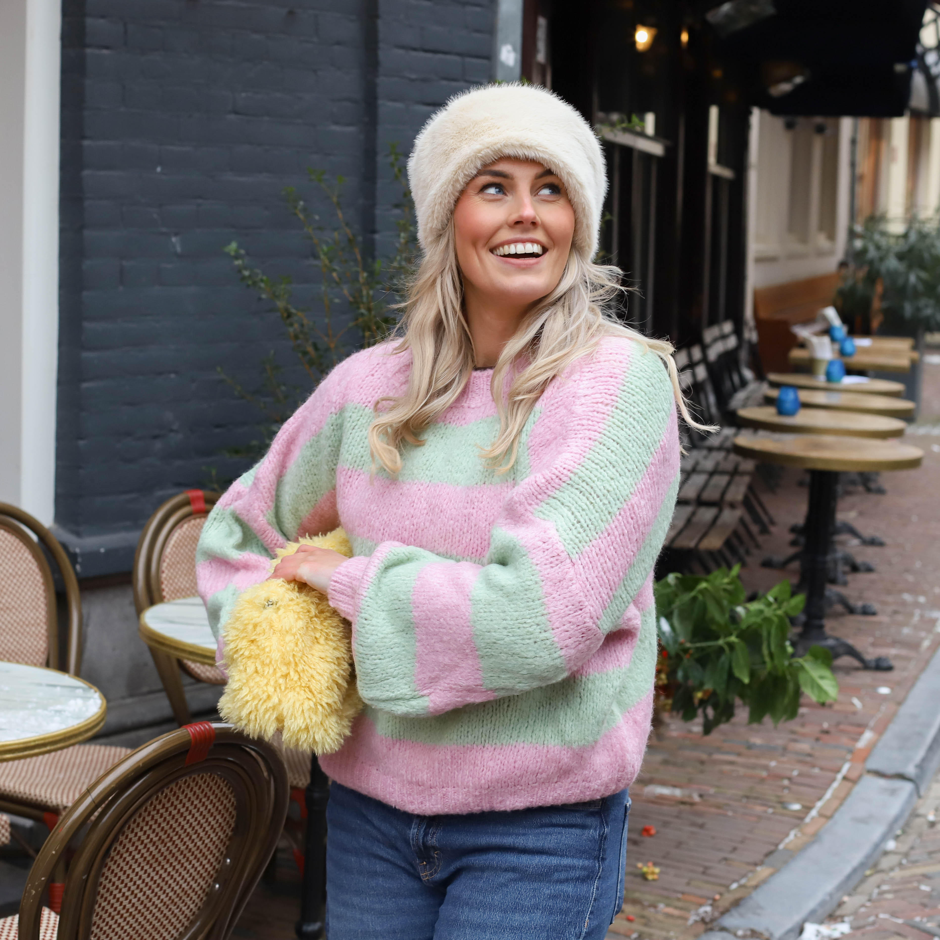 Oversized streep sweater roze groen