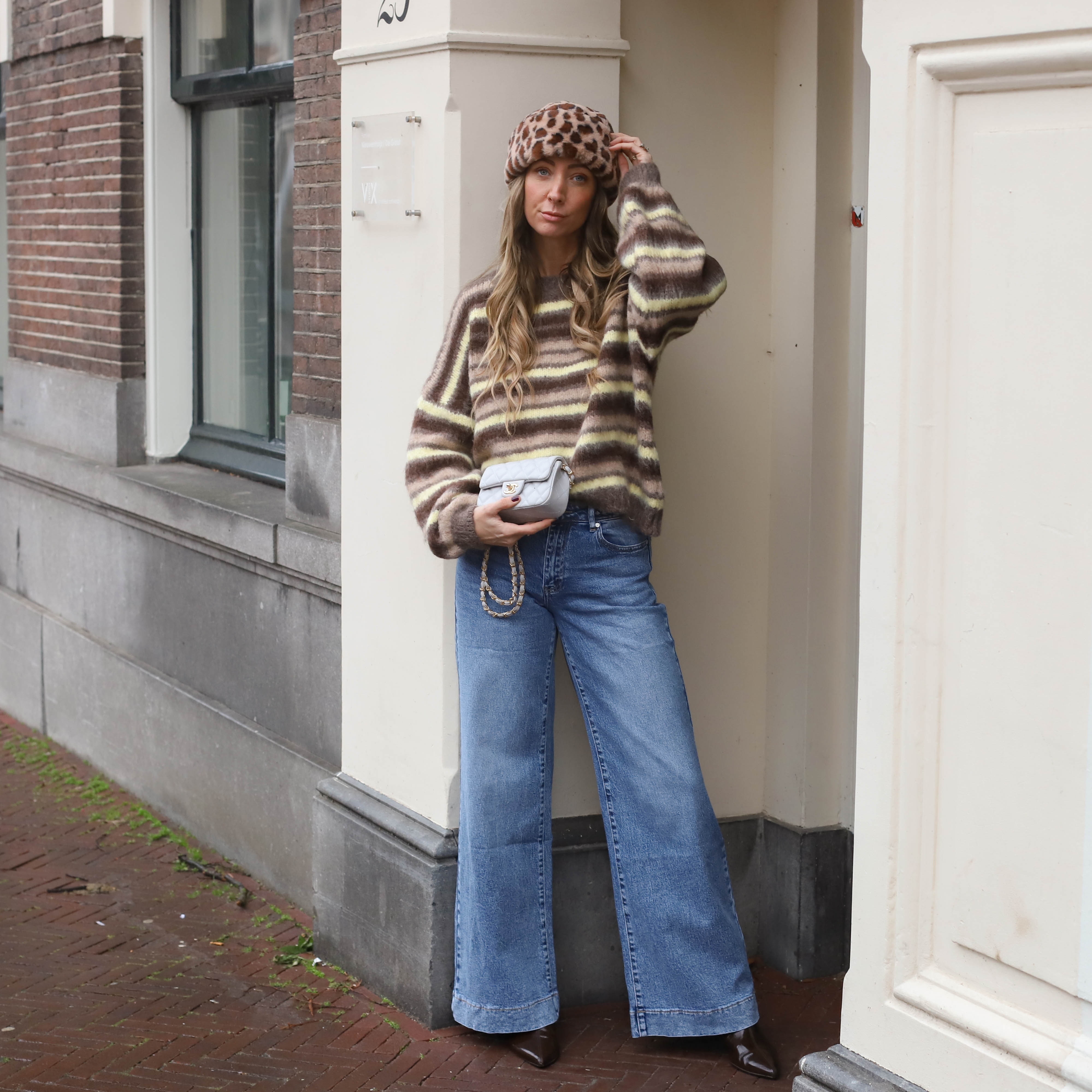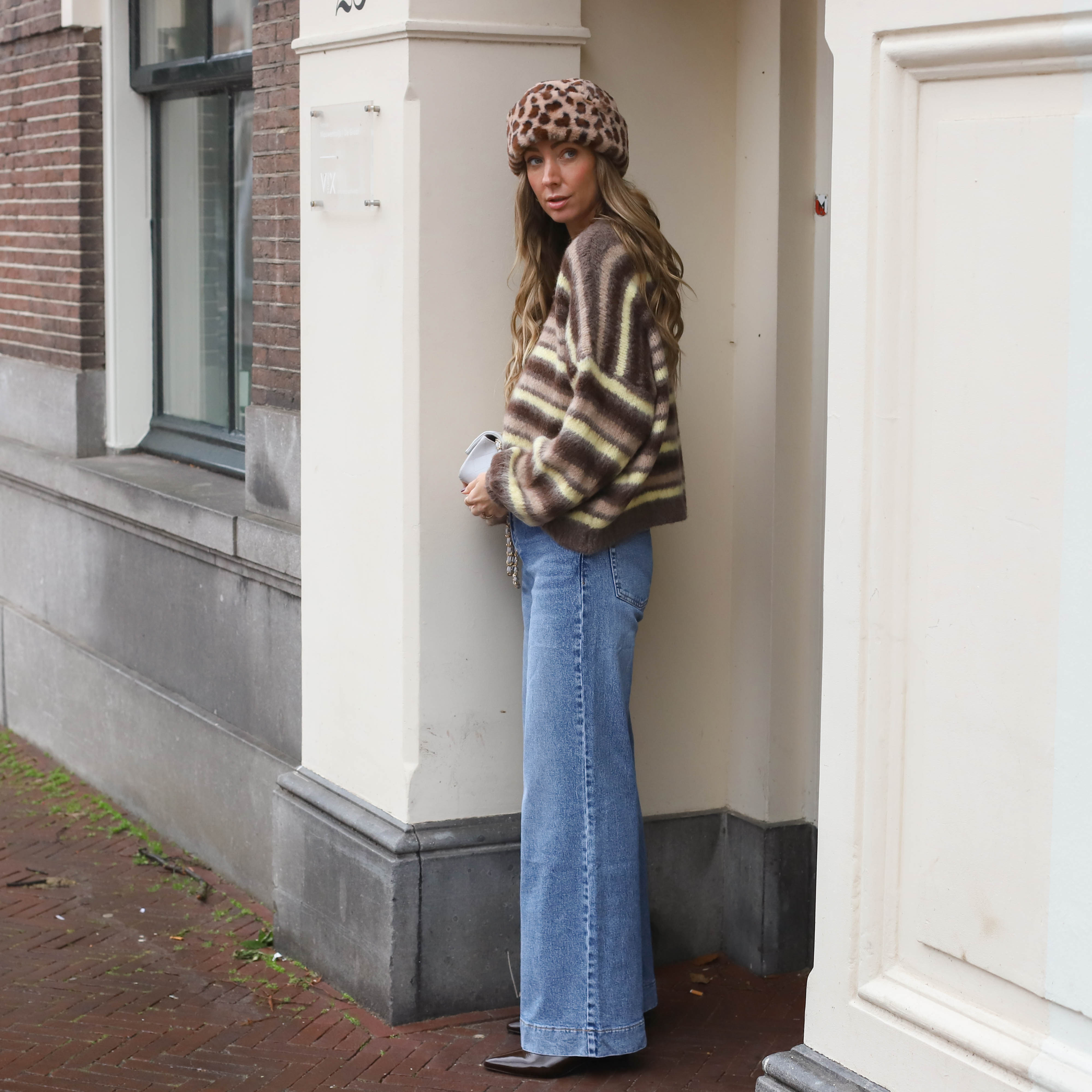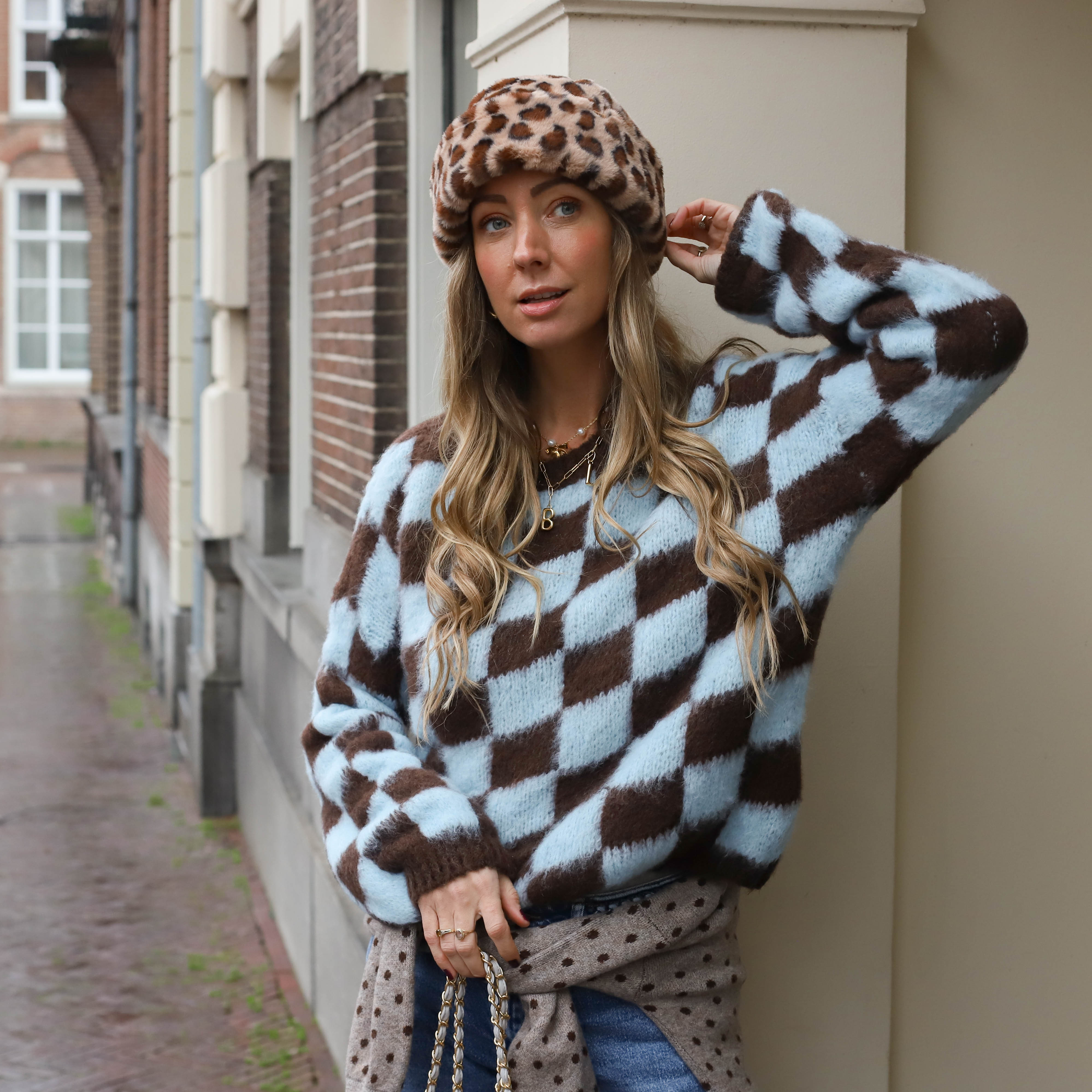 Mohair blokjes trui blauw bruin