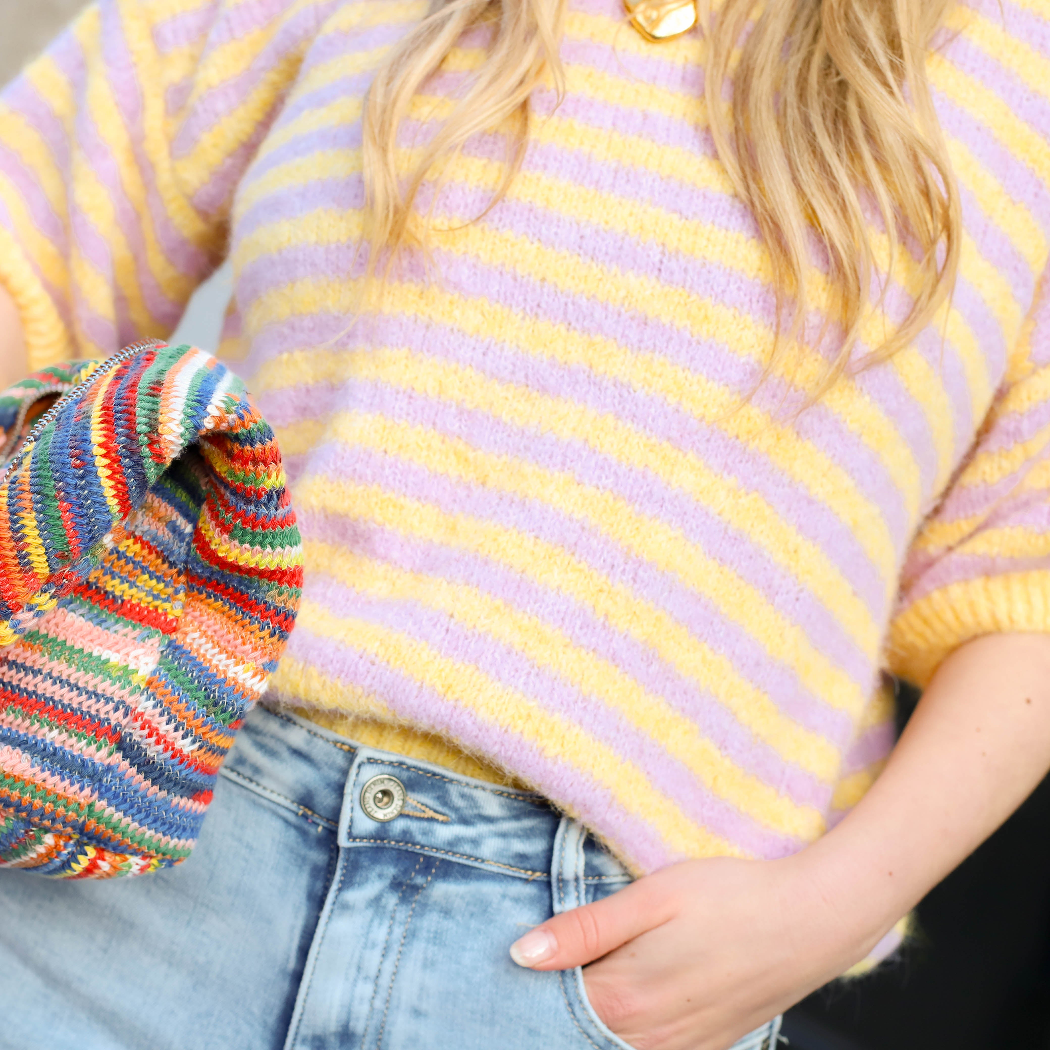 Ammy streep knit geel lila