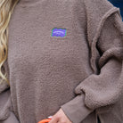 Deze Patch Sweater in een zachte taupe tint is een comfy en stoere toevoeging aan je casual collectie. De sweater heeft een heerlijk zachte, teddy-achtige textuur en een trendy boxy pasvorm.