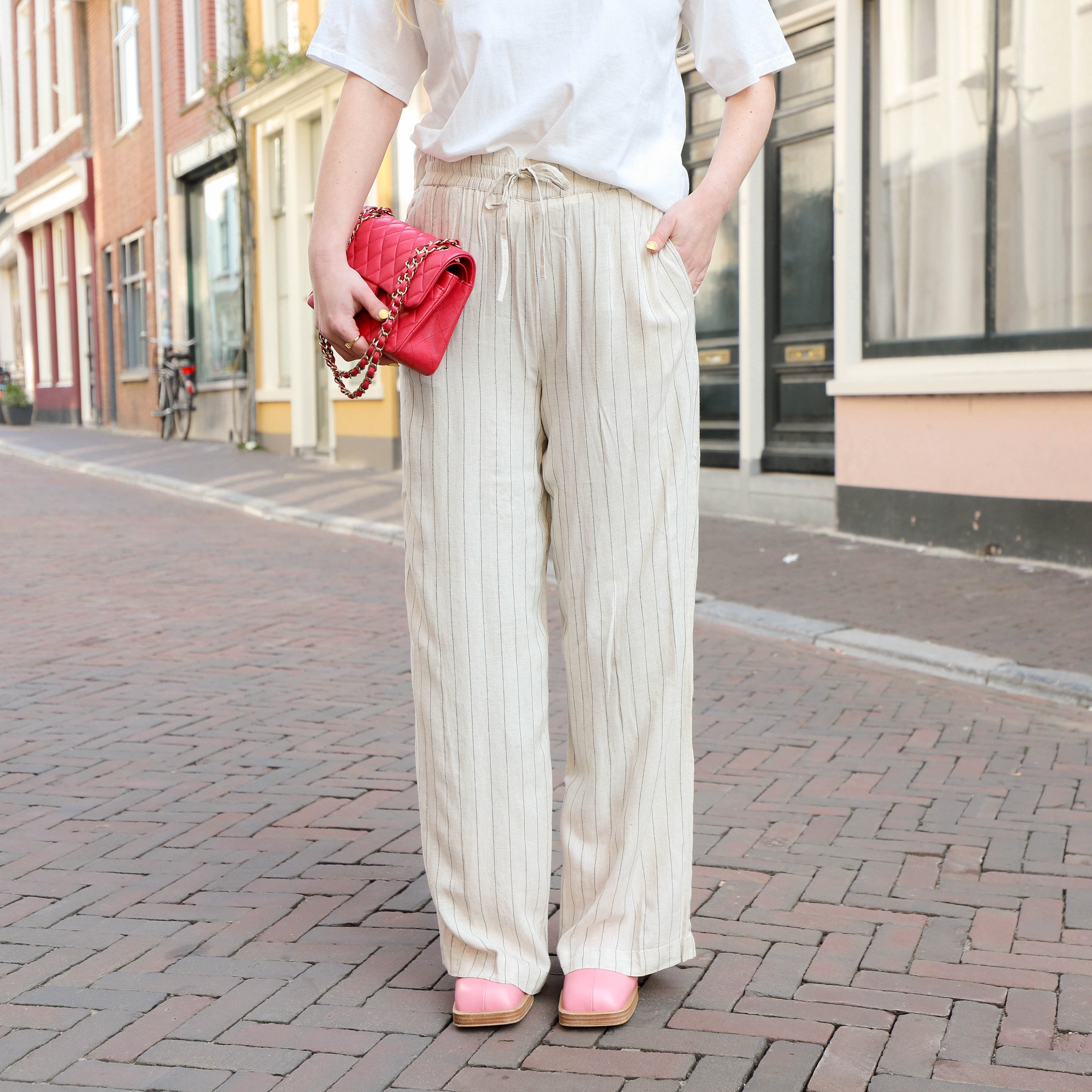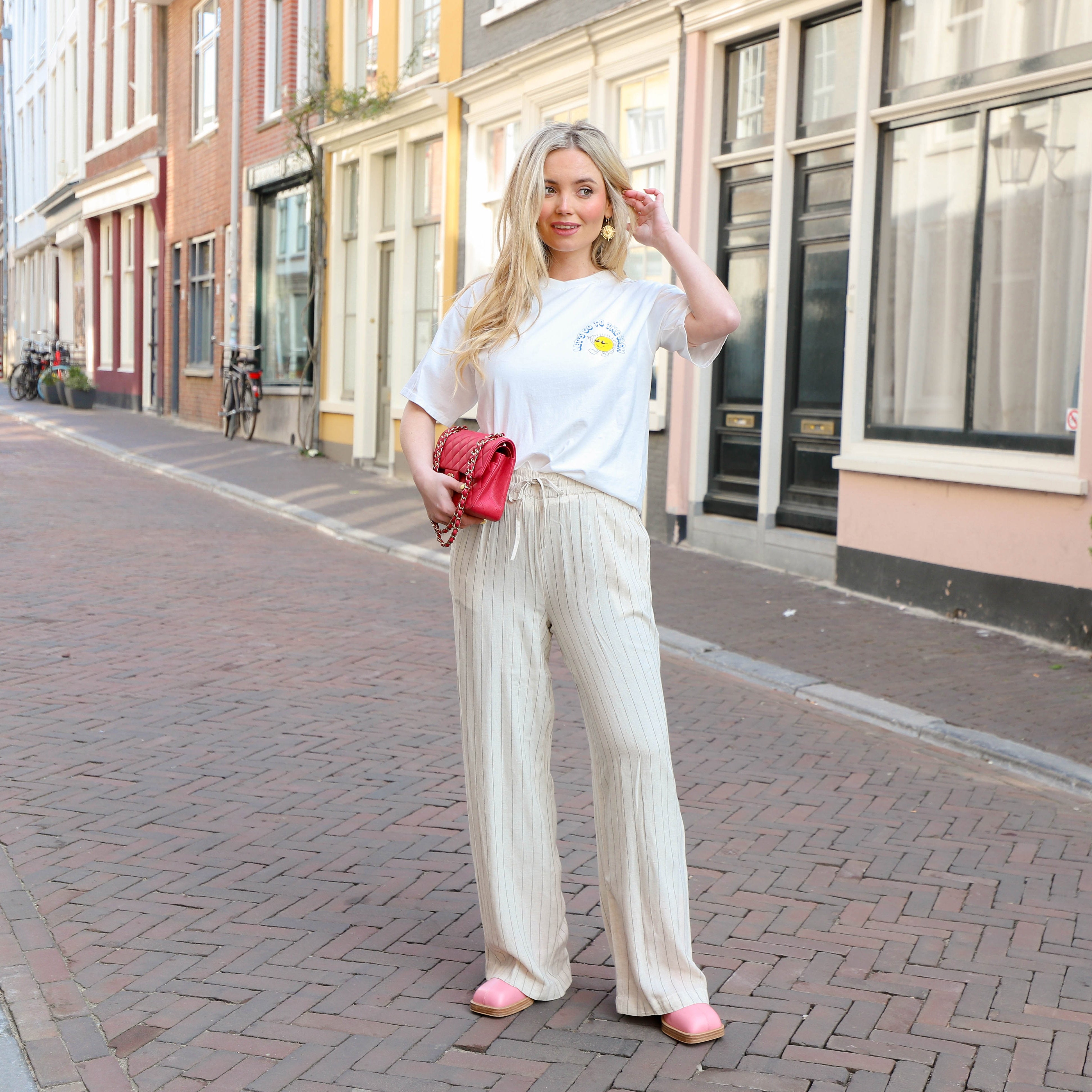 Deze broek met wijde pijpen is de perfecte aanvulling op je garderobe voor zowel casual als geklede gelegenheden. De hoge taille en de linnen-viscose mix zorgen voor een comfortabele en luchtige pasvorm.