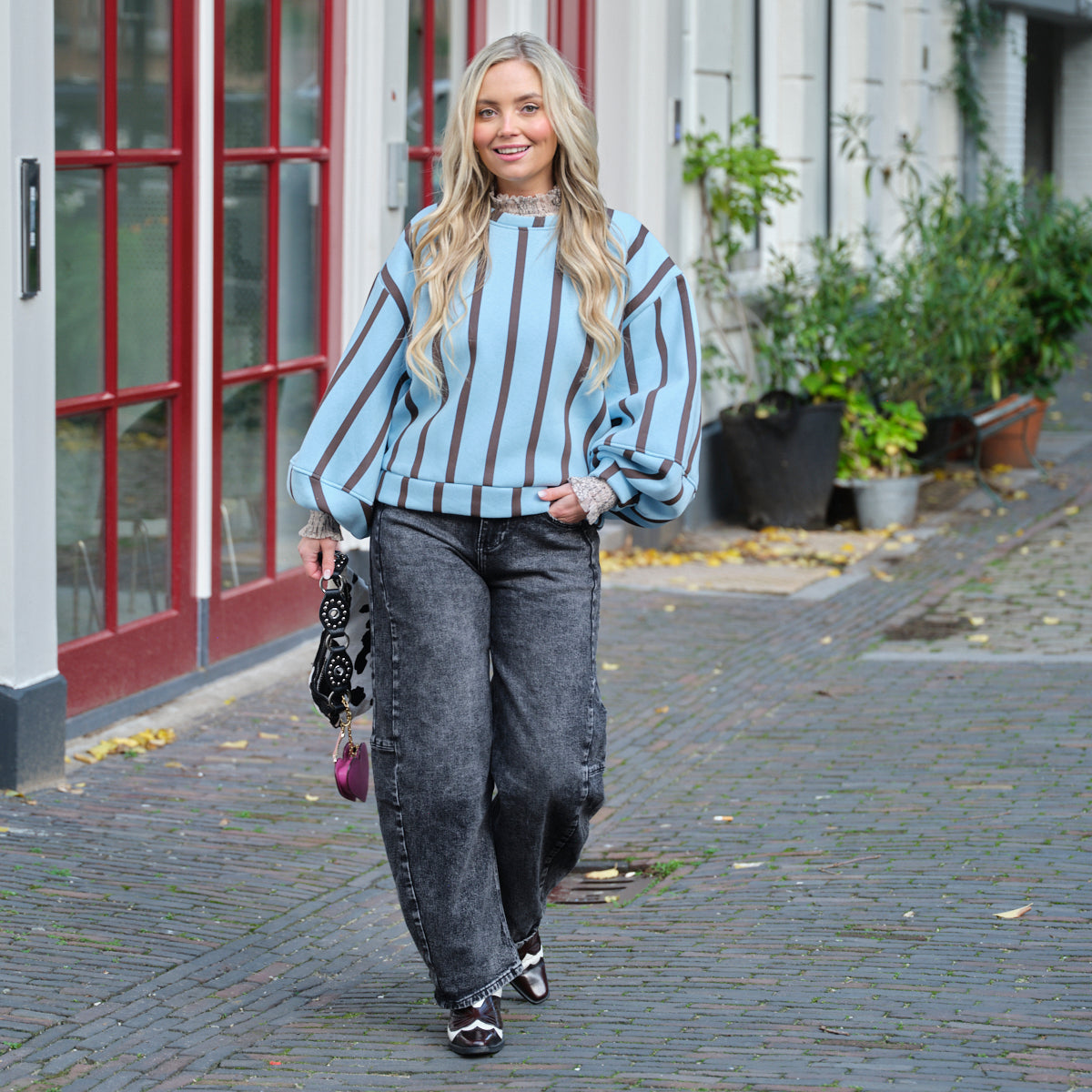 Ruby Streep sweater blauw bruin