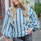 Deze Ruby Streep Sweater is een comfortabele en trendy trui die je casual look direct een boost geeft. De sweater is gemaakt van zachte stof en heeft een opvallend verticaal streepdessin in een speelse combinatie van blauw en bruin. De wijde, oversized pasvorm, de ronde hals en de elastische boorden aan de mouwen en onderkant geven deze sweater een moderne, nonchalante uitstraling.