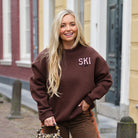 Deze Ski Club Sweater in bruin is een comfy en sportieve toevoeging aan je casual look. De sweater is gemaakt van een zachte, stevige stof en heeft een geborduurde, varsity-achtige 'Ski Club' patch op de borst. De ruime, oversized pasvorm, de klassieke ronde hals en de lange mouwen met ribgebreide boorden zorgen voor een relaxte en nonchalante uitstraling.