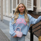 Deze French Riviera Sweater is een comfy en stijlvolle toevoeging aan je casual collectie, met een knipoog naar de Franse kust. De sweater is gemaakt van een zachte, stevige sweatstof in een zachte lichtblauwe kleur.