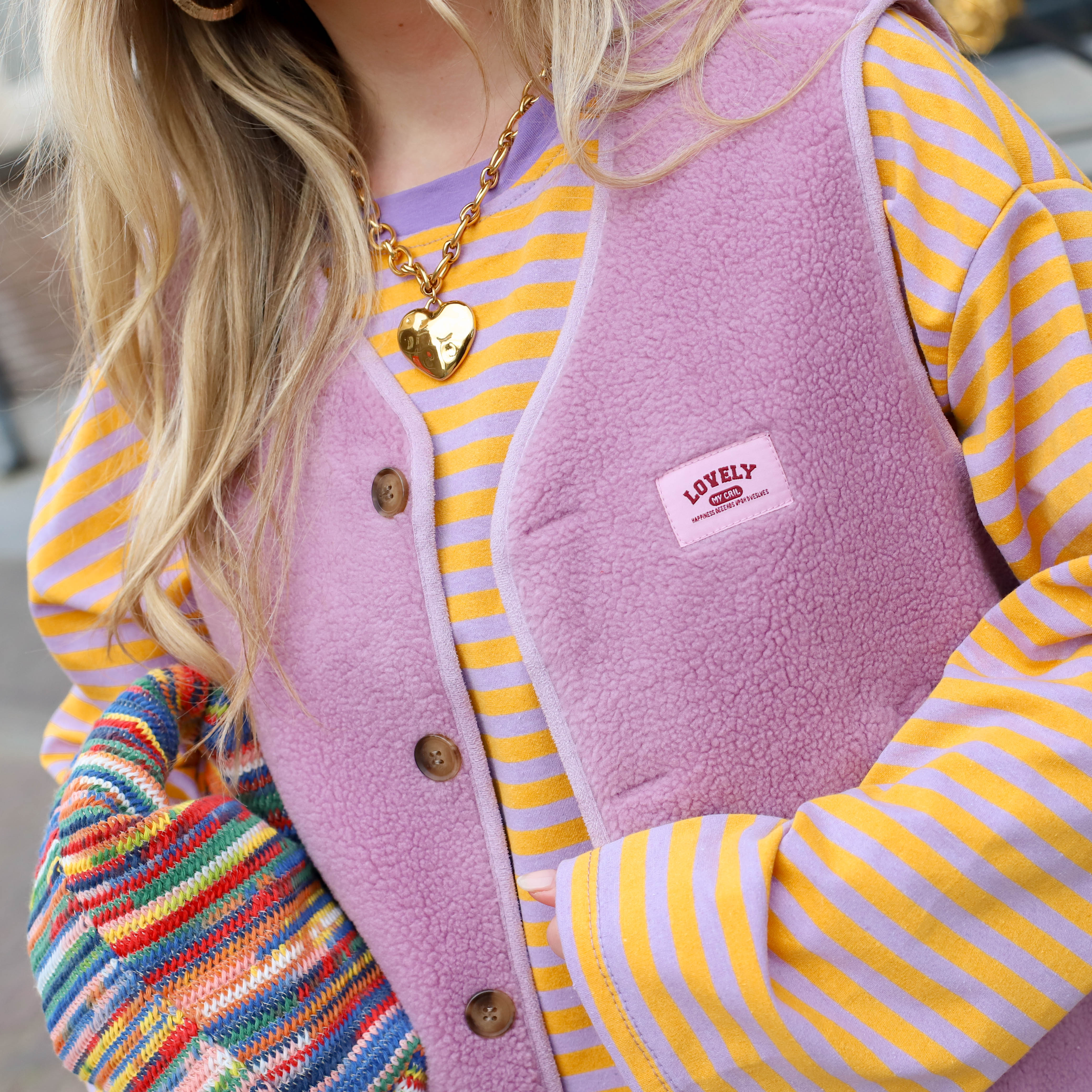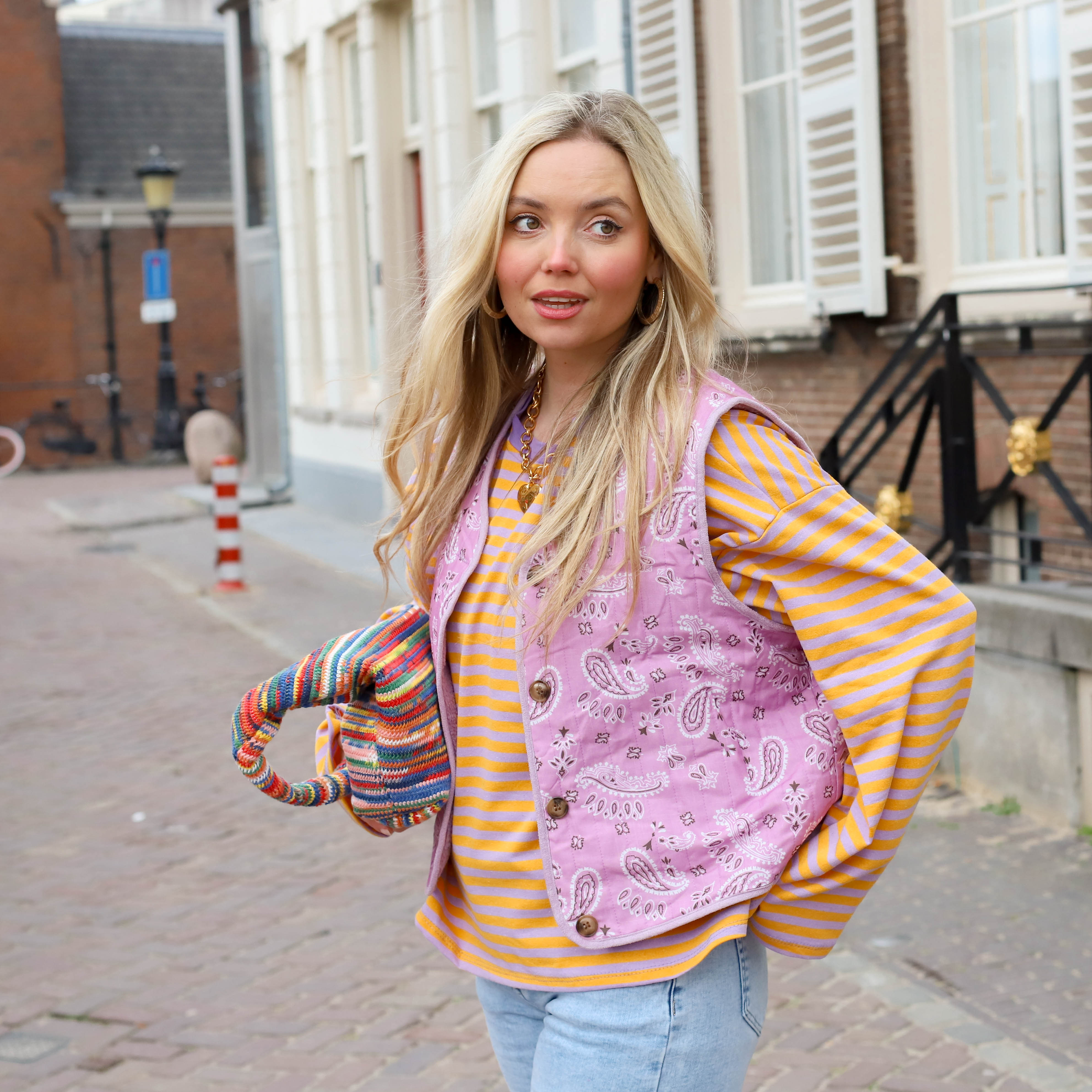 Dit Paisley Reversible Gilet is de perfecte veelzijdige toevoeging aan je garderobe. Het gilet heeft een zachte teddy-structuur aan de ene zijde en een stijlvolle paisley-print aan de binnenzijde, waardoor het volledig omkeerbaar is. Met de handige knoopsluiting en de subtiele "Lovely" patch op de borst creëer je moeiteloos een speelse en on-trend look.
