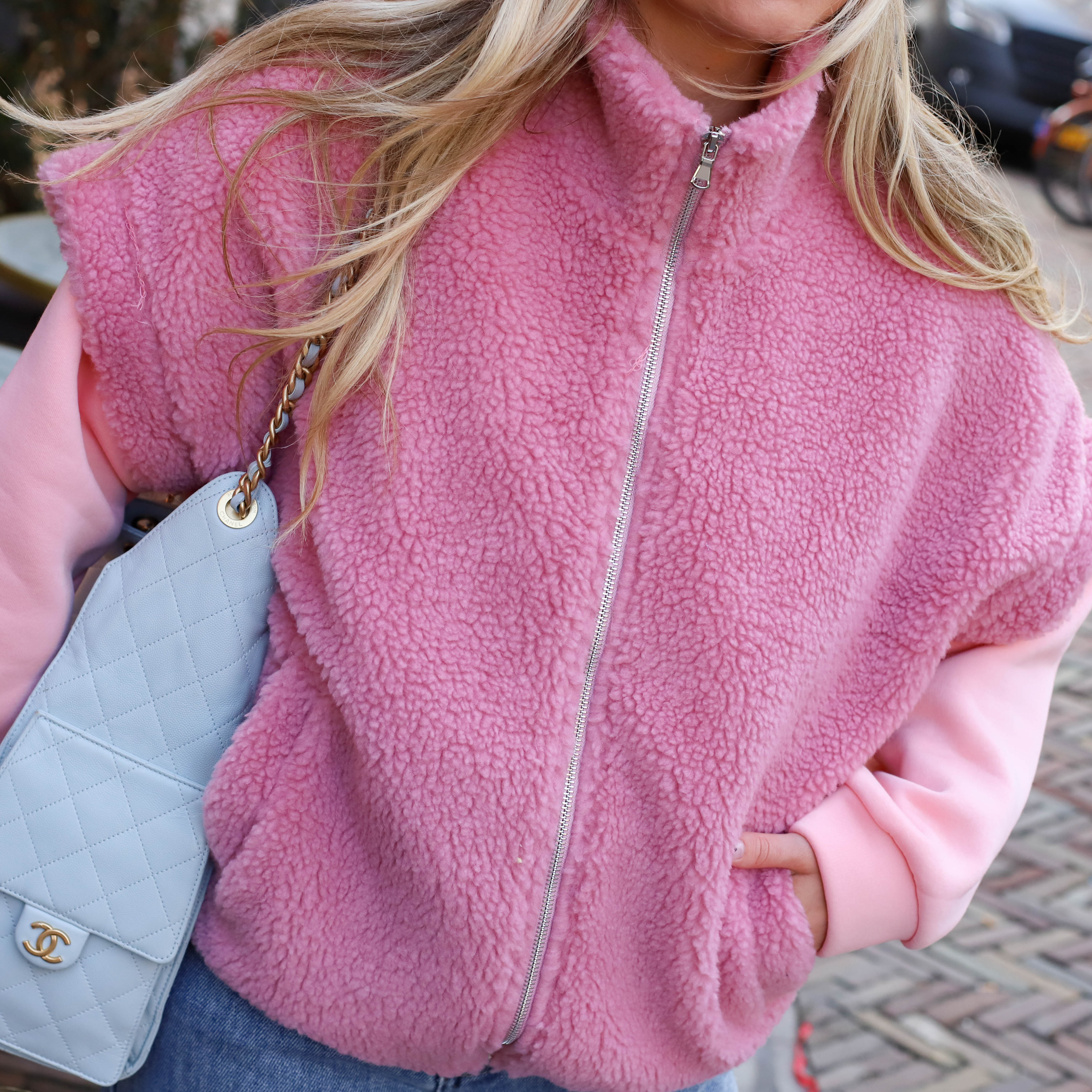 Het Tammy Gilet Roze is de ultieme knuffelbare toevoeging aan je outfit. Dit oversized gilet van een heerlijke teddy-stof heeft een praktische ritssluiting, een opstaande kraag en handige steekzakken aan de voorzijde. Door de roze kleur en de relaxte pasvorm is dit het ideale item om je look direct een warme en trendy upgrade te geven.