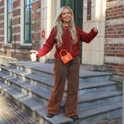 De CHARISSA broek in SPICED ORANGE is een katoenen high-waist fit met een rechte pijp. De warme oranjetint brengt pit in je herfstlook, en de stevige stof geeft een gestructureerde uitstraling. Combineer met een zachte knit of blazer voor een balanced look.