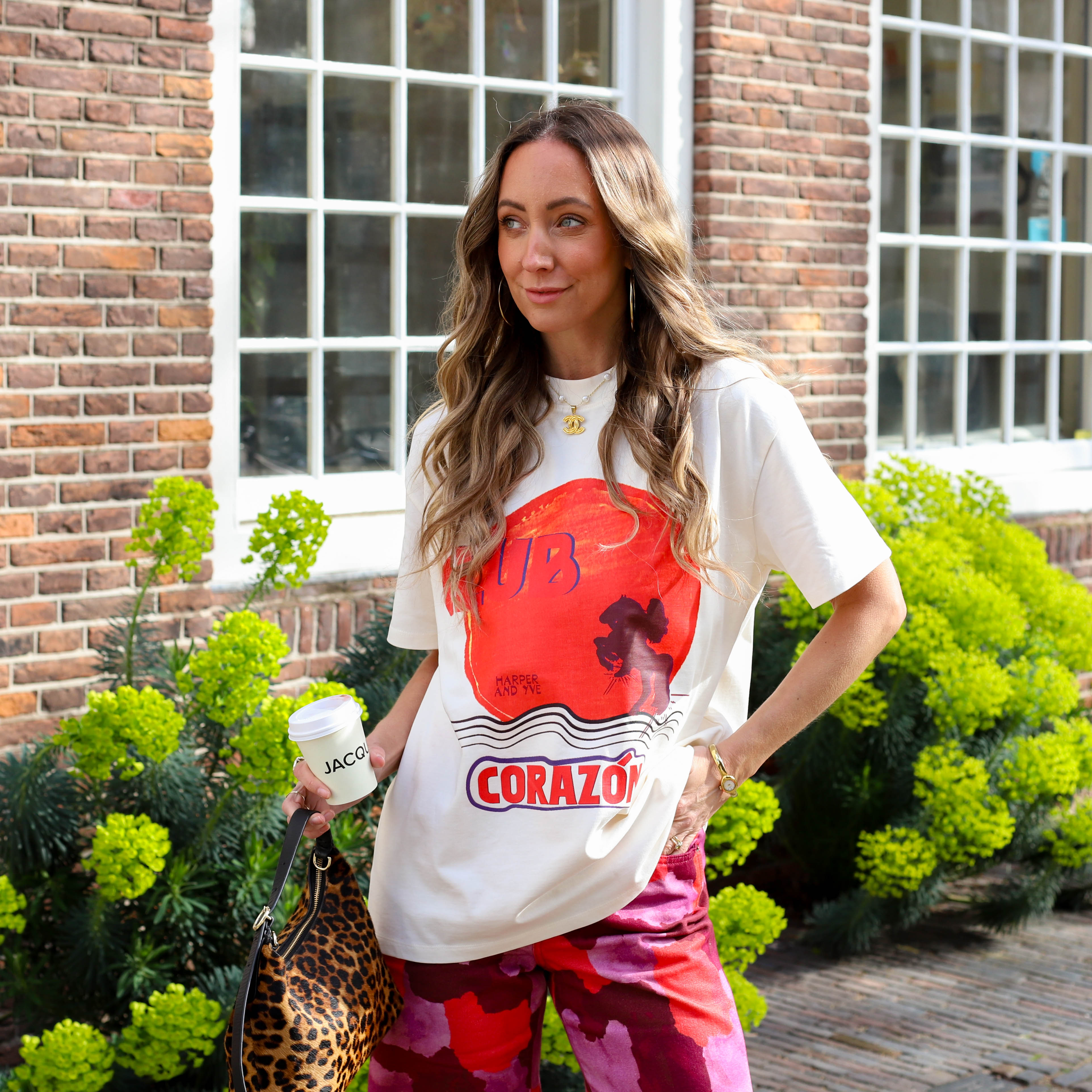Dit ecru T-shirt van Harper & Yve is een echte eyecatcher! Met de grote "Club Corazón" graphic en de vintage-inspired print breng je direct een vakantiegevoel naar je kledingkast. Het shirt heeft een fijne, rechte pasvorm en een klassieke ronde hals, waardoor hij moeiteloos combineert met je favoriete jeans of een leuk rokje.