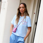 De zachte lichtblauwe kleur in combinatie met de subtiele “La dolce vita” opdruk geeft dit leuke T-shirt een frisse en zomerse uitstraling. De comfortabele stof en de relaxte fit zorgen ervoor dat het shirt heerlijk zit en perfect is voor alledaagse looks. Draag ’m casual op een jeans of combineer met een rok of short voor een speelse, vrouwelijke stijl. Een fijne basic met een vrolijke twist.