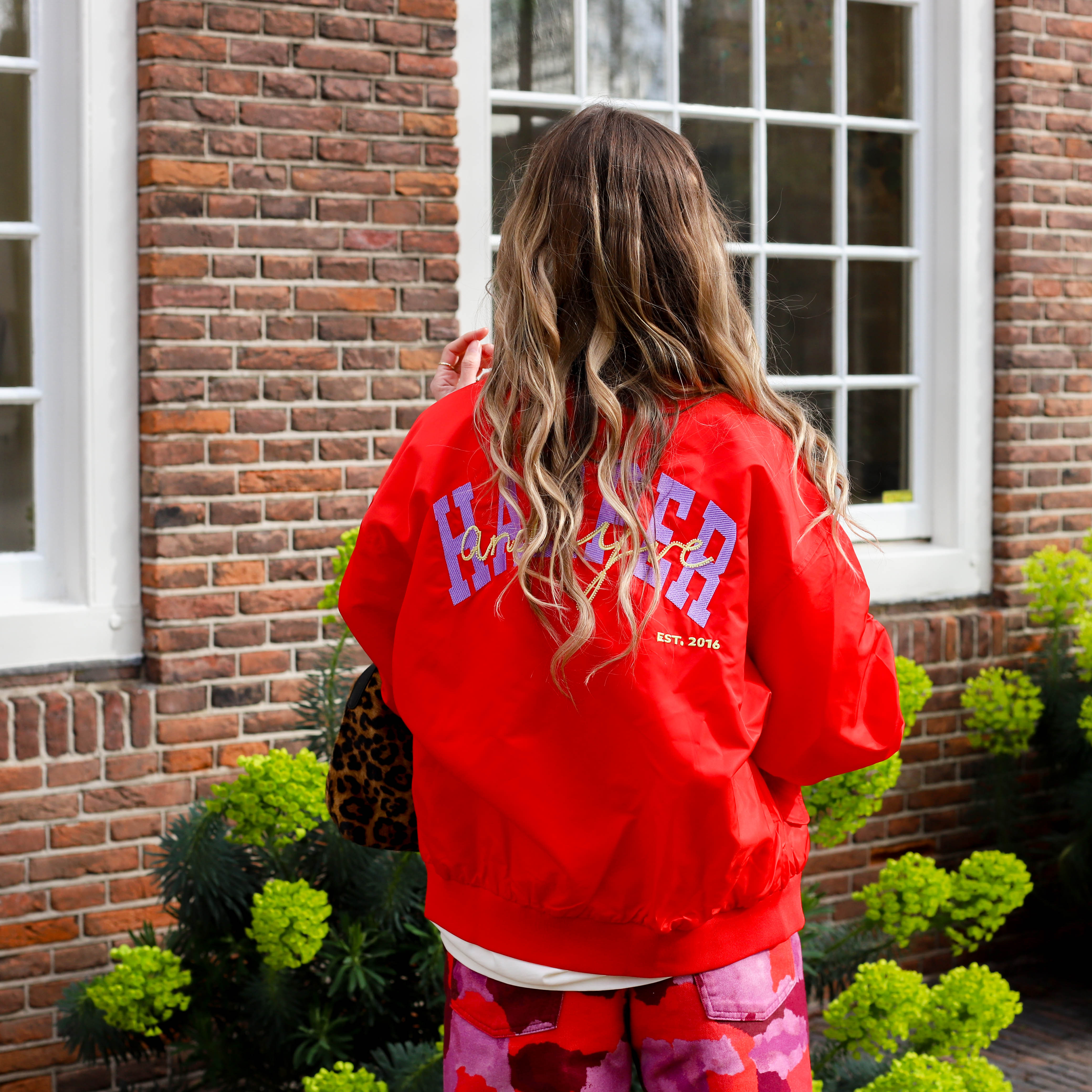 Maak een echt statement met dit knalrode bomberjack van Harper & Yve! De 'Poppy Red' kleur knalt eruit en geeft elke outfit direct een energieke boost. Het jack heeft een stoere, oversized pasvorm met gerimpelde details op de mouwen voor een unieke touch. Dankzij de elastische boorden en de gouden ritssluiting combineert dit jasje moeiteloos een sportieve vibe met een luxe uitstraling. De perfecte laag voor over je favoriete T-shirt of jurkje!