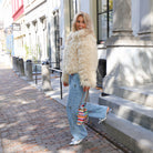 De STACY jacket in ecru is een kort jasje met licht gewatteerde structuur en rechte pasvorm. De opgestikte zakken en kraag maken het item stoer, de kleur houdt het fris. For days when less is more.