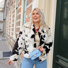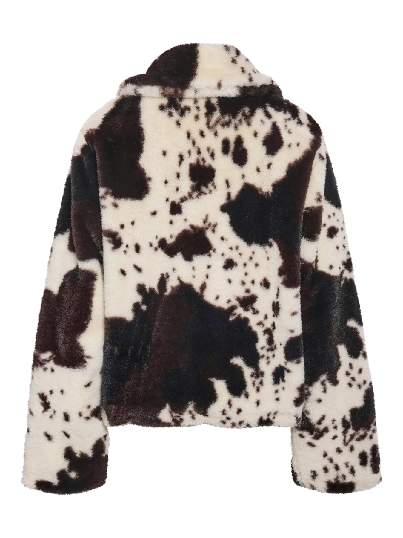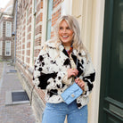 Voeg een vleugje luxe en lef toe aan je garderobe met onze 'Eve Fur Jacket'. Dit opvallende faux fur jack heeft een speelse zwart-witte print en een zachte, volumineuze kraag, wat zorgt voor een dramatische en toch knusse uitstraling. Het is het perfecte statement item om elke outfit direct een upgrade te geven.