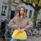 Geef je outfit een stoere, casual look met ons puffy jack taupe Dit gewatteerde jack heeft een klassieke kraag en een knoopsluiting aan de voorkant. De wijde, oversized pasvorm en elastische boorden aan de onderkant en mouwen zorgen voor een comfortabele en trendy uitstraling.