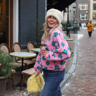 Deze Teddy Jas is een leuke jas, perfect om kleur toe te voegen aan je look. De jas is gemaakt van zachte teddy fleece en heeft een opvallende lichtroze met een all-over patroon van groene bloemen. De ritssluiting, de hoge opstaande kraag en de comfortabele pasvorm maken dit een ideale cropped tussenjas.