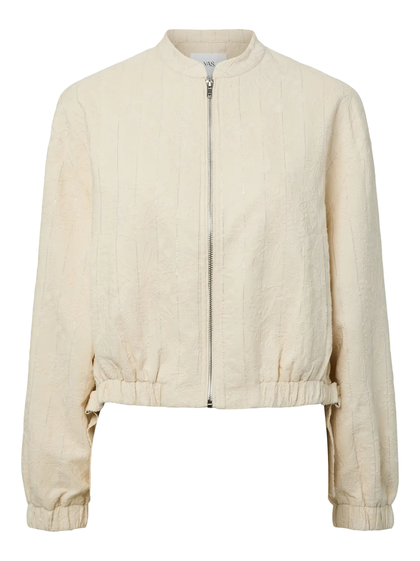Deze Yasphilina LS Bomber Jacket is een elegante en vrouwelijke bomber met een luxe uitstraling. De verfijnde jacquard-achtige structuur geeft de jas een chique touch, terwijl de korte lengte en elastische boorden zorgen voor een modern silhouet. Dankzij de ritssluiting en lichte stof is deze bomber perfect om zowel casual als gekleed te dragen, ideaal voor het tussenseizoen.
