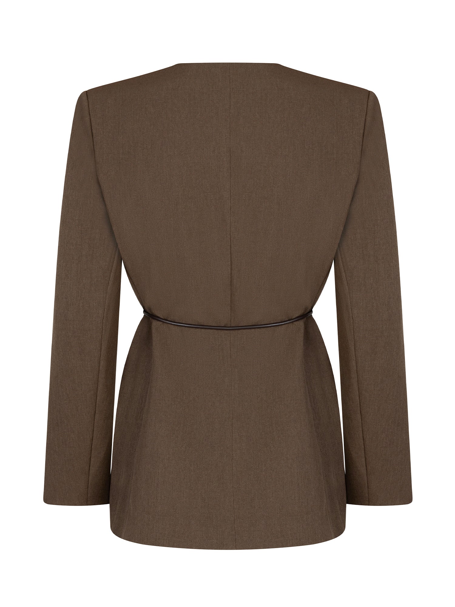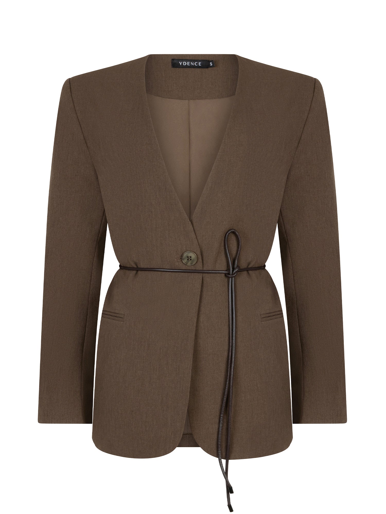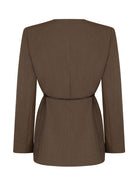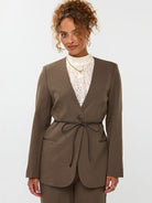 Blazer Lexie is een stijlvolle en moderne toevoeging aan je garderobe. Deze blazer heeft een getailleerde pasvorm en sluit met een enkele knoop aan de voorkant. De dunne leren ceintuur accentueert de taille en geeft het geheel een elegante, eigentijdse uitstraling. Met de diepe V-hals en minimalistische belijning is dit item perfect voor zowel zakelijke als casual gelegenheden. De totale lengte van blazer Lexie is 74,6 cm met een mouwlengte van 61 cm bij een maat S.