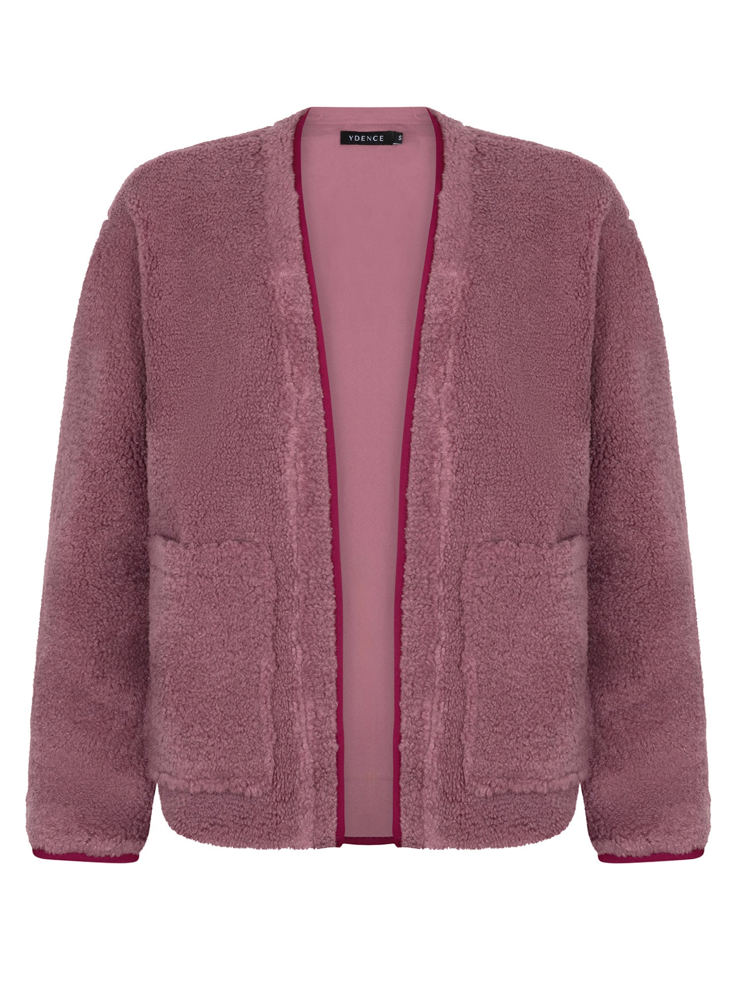Jacket Sally is een heerlijk zacht teddyjasje dat warmte en comfort combineert. Dit openvallende model heeft een rechte, oversized pasvorm en is voorzien van twee grote opgestikte zakken aan de voorkant. De zachte teddy stof maakt jacket Sally ideaal voor cozy laagjeslooks, terwijl de contrasterende biezen langs de randen zorgen voor een nette afwerking.