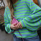 Deze Daisy Streep Sweater is een levendige en comfortabele trui, perfect om een frisse kleurcombinatie aan je dagelijkse look toe te voegen. De sweater is uitgevoerd in een breed horizontaal streeppatroon van heldergroen en kobaltblauw. De ronde hals, de subtiel gepofte mouwen met verlaagde schoudernaden en de relaxte pasvorm maken dit een ideaal item voor een moderne en nonchalante outfit.
