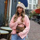 Combineer deze musthave met een baggy jeans of een pantalon voor een relaxte, fashionable outfit.
