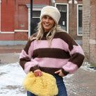 Deze Monica Mohair Knit Lichtroze is een heerlijk zachte en warme trui met een trendy, oversized uitstraling. Het item is uitgevoerd in een bruine kleur met brede, lichtroze banen en heeft een opvallende, harige mohair-look textuur. Het ontwerp is voorzien van lange mouwen en een ronde hals, wat zorgt voor een comfortabele en modieuze look voor de koudere dagen.