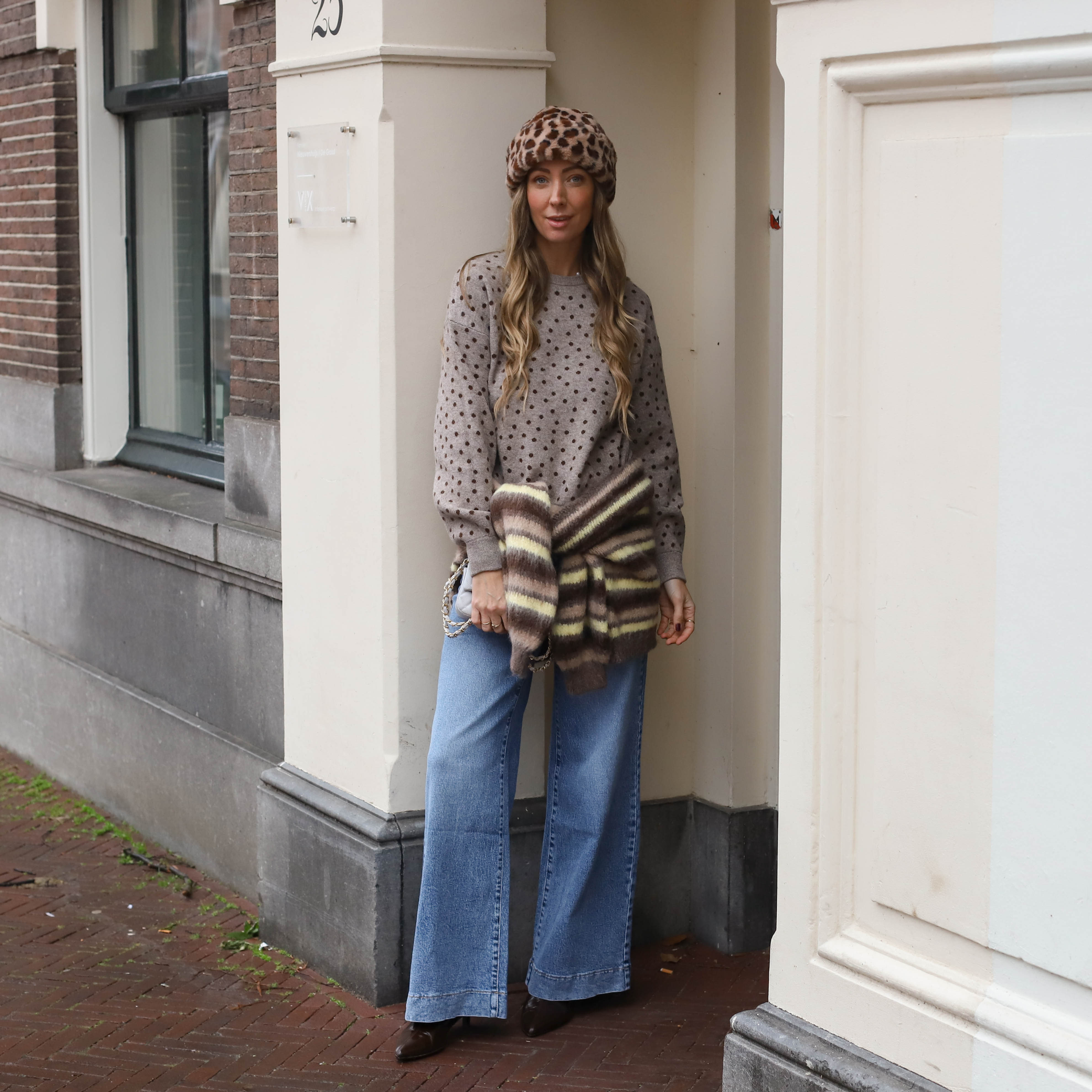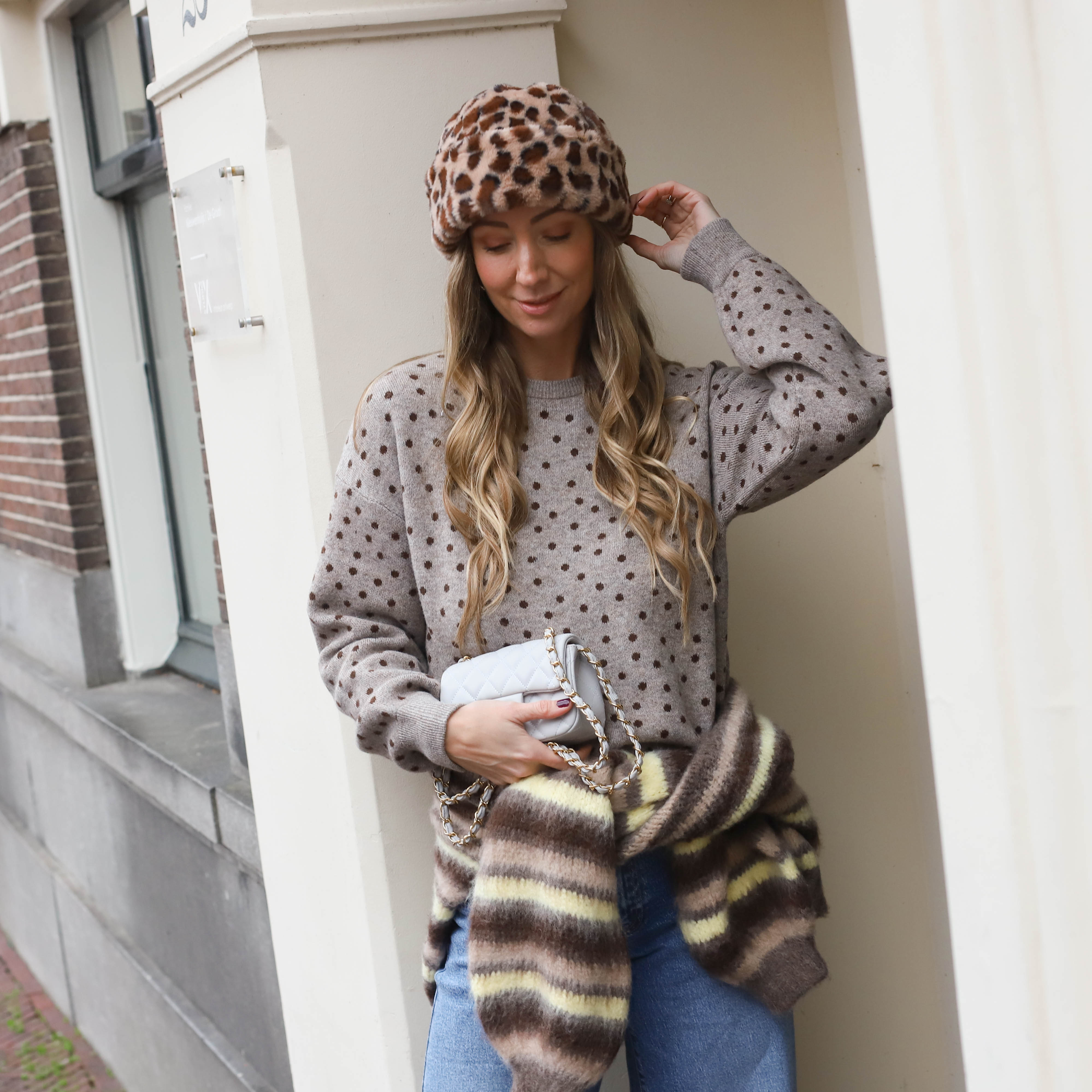 Deze PC Nancy Dot Knit is een charmante en tijdloze trui, perfect om een speels patroon aan je dagelijkse look toe te voegen. De trui is uitgevoerd in een zachte basiskleur — beschikbaar in zand met bruine stippen of een lichtere variant met roze details — en is versierd met een all-over stippenpatroon. Dankzij de contrasterende boorden bij de hals, mouwen en taille krijgt deze knit een frisse en vrouwelijke uitstraling. De comfortabele pasvorm en de klassieke ronde hals maken dit een ideale trui voor een stijlvolle, alledaagse outfit.